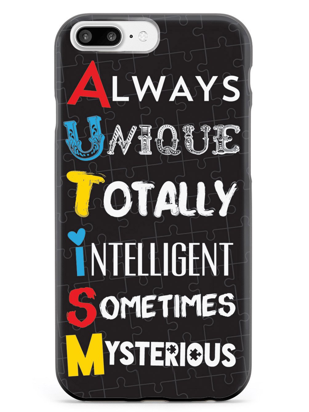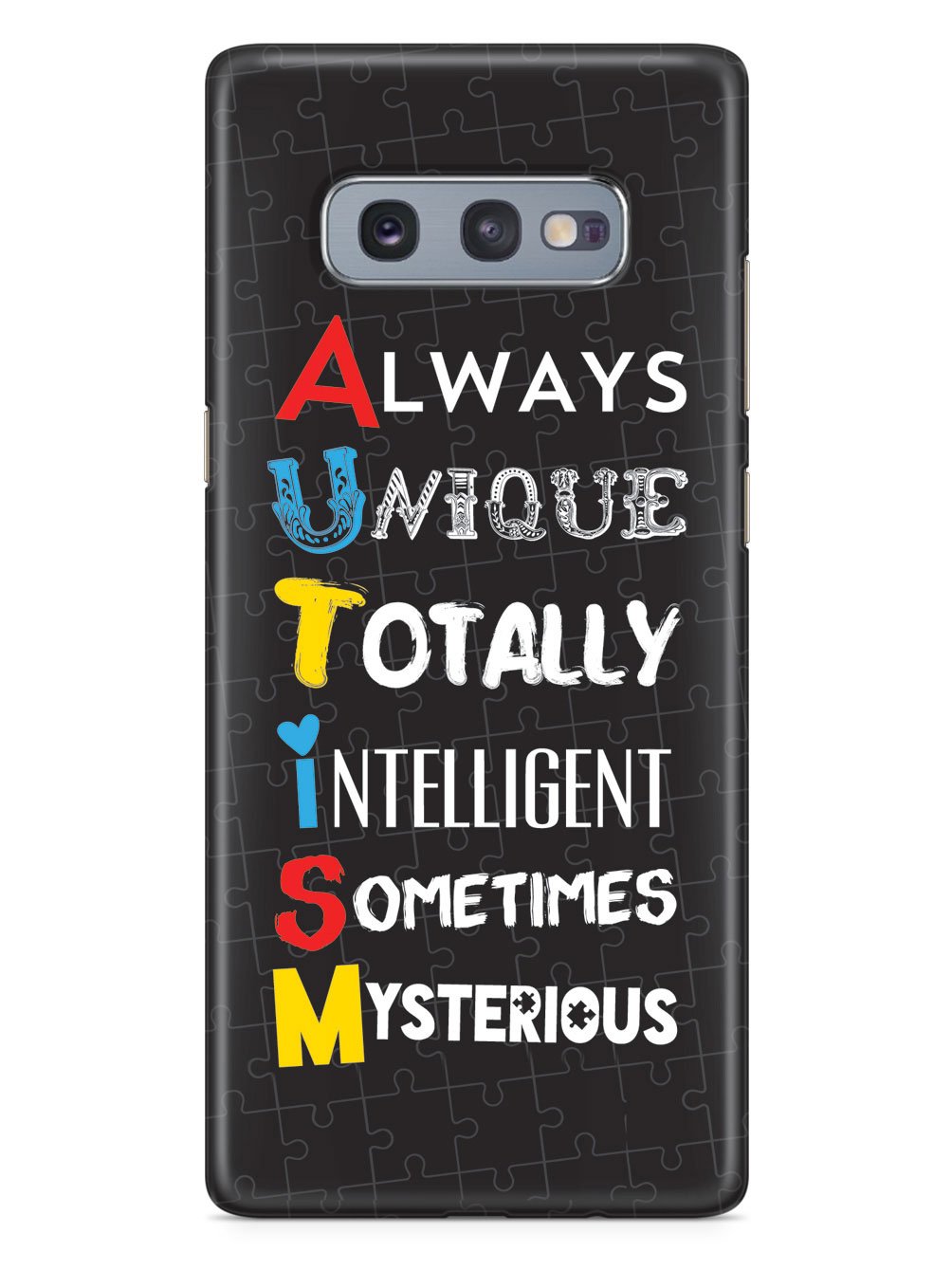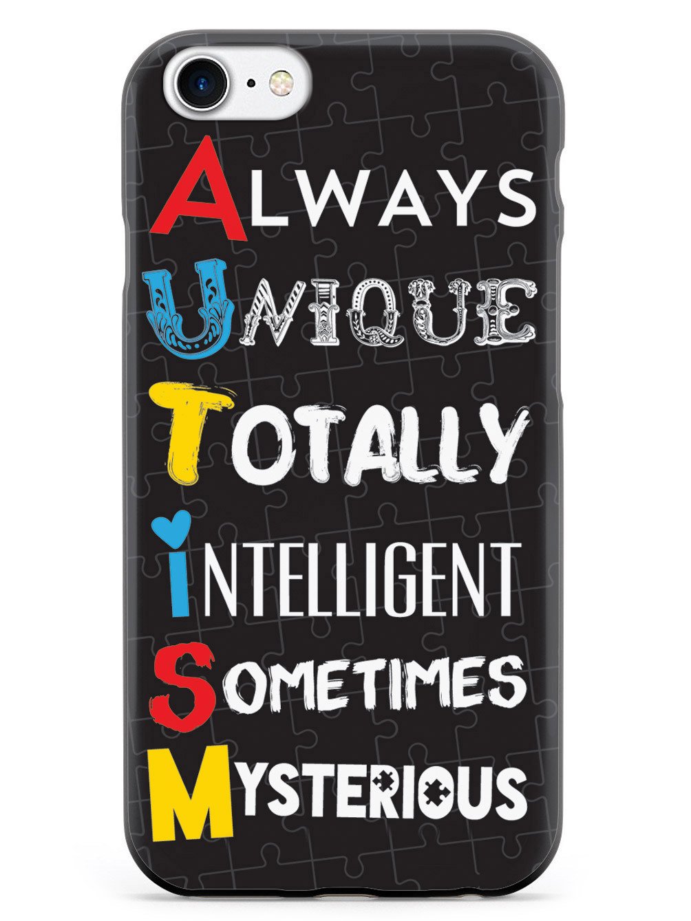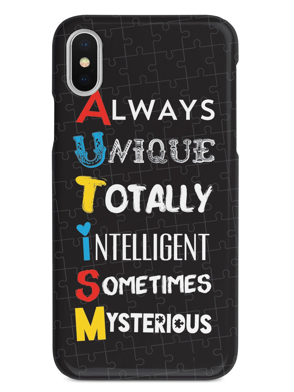 This unique A.U.T.I.S.M - Autism awareness case was creatively designed and printed with a high-quality finish in-house using UV Printing process, where the ink is cured by UV rays to produce sharp and vivid images with a high degree of color accuracy.