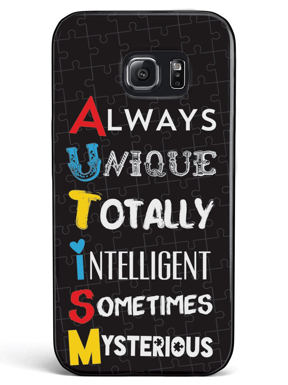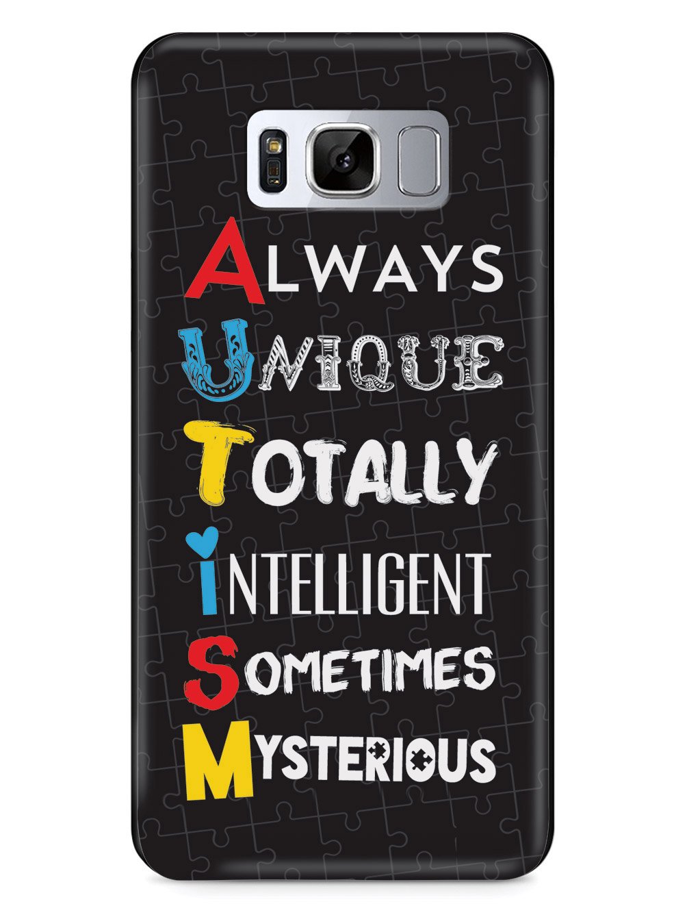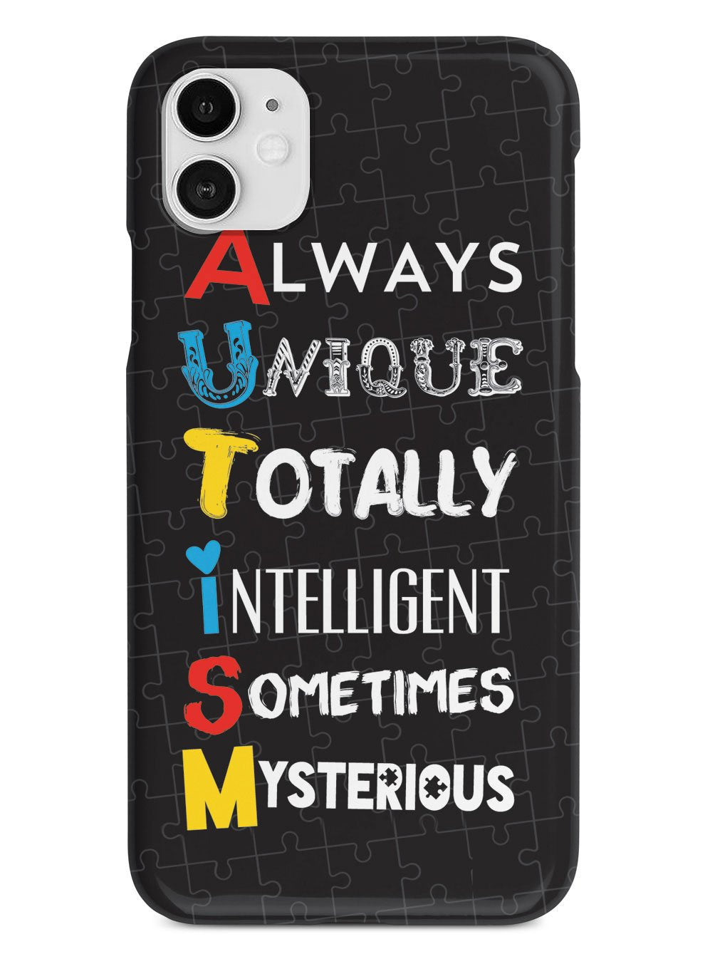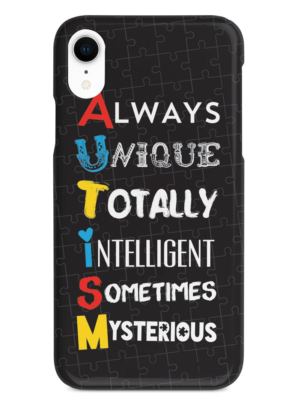 This unique A.U.T.I.S.M - Autism awareness case was creatively designed and printed with a high-quality finish in-house using UV Printing process, where the ink is cured by UV rays to produce sharp and vivid images with a high degree of color accuracy.