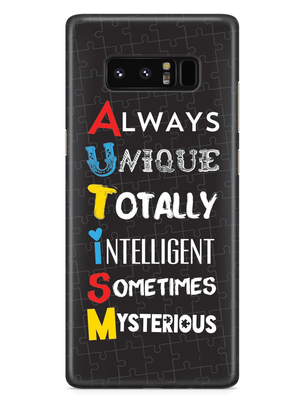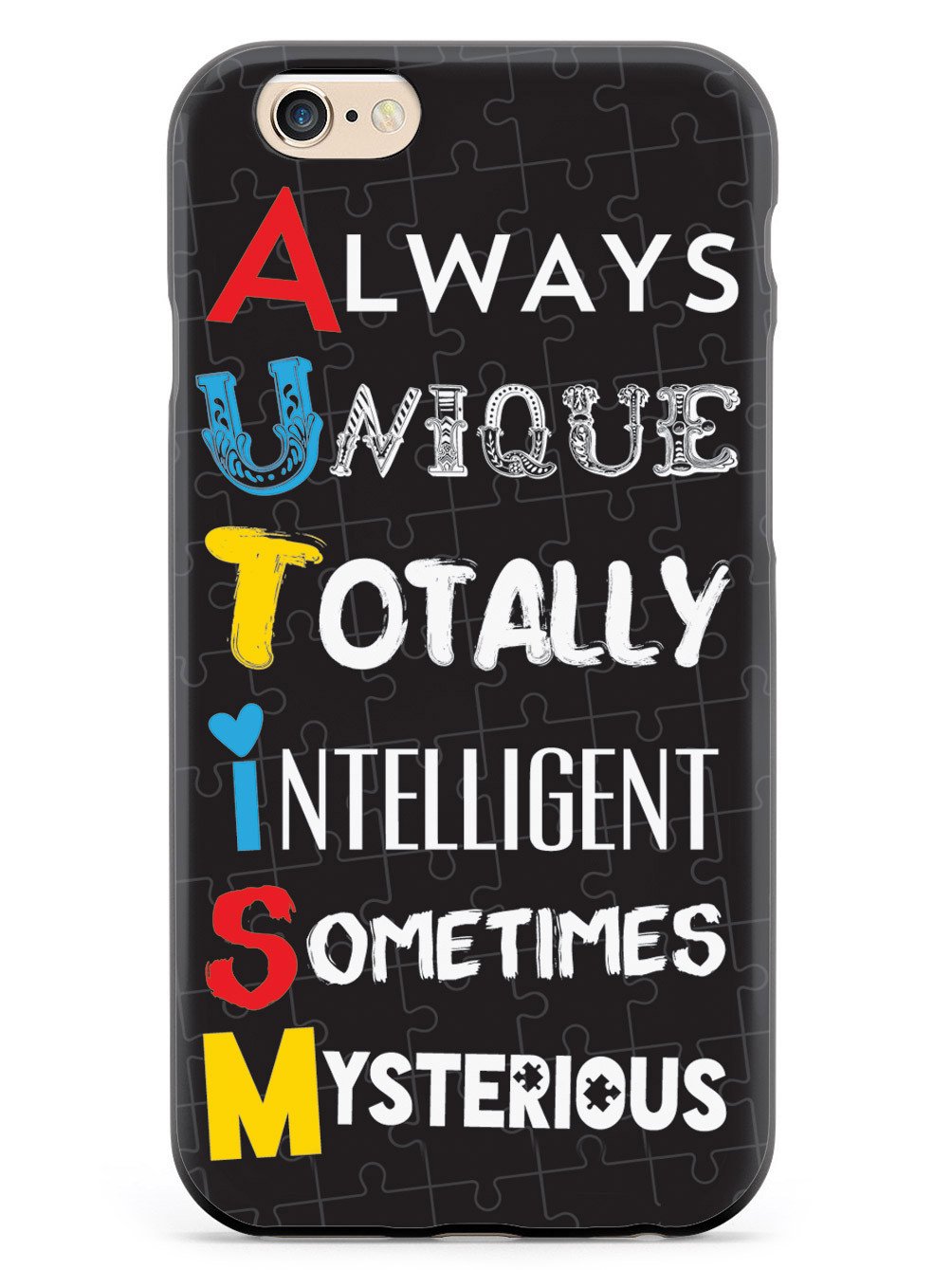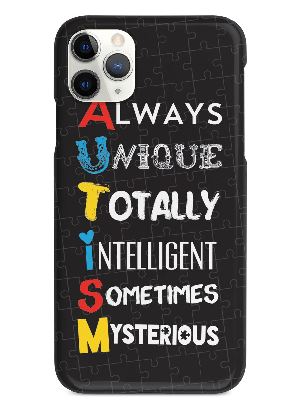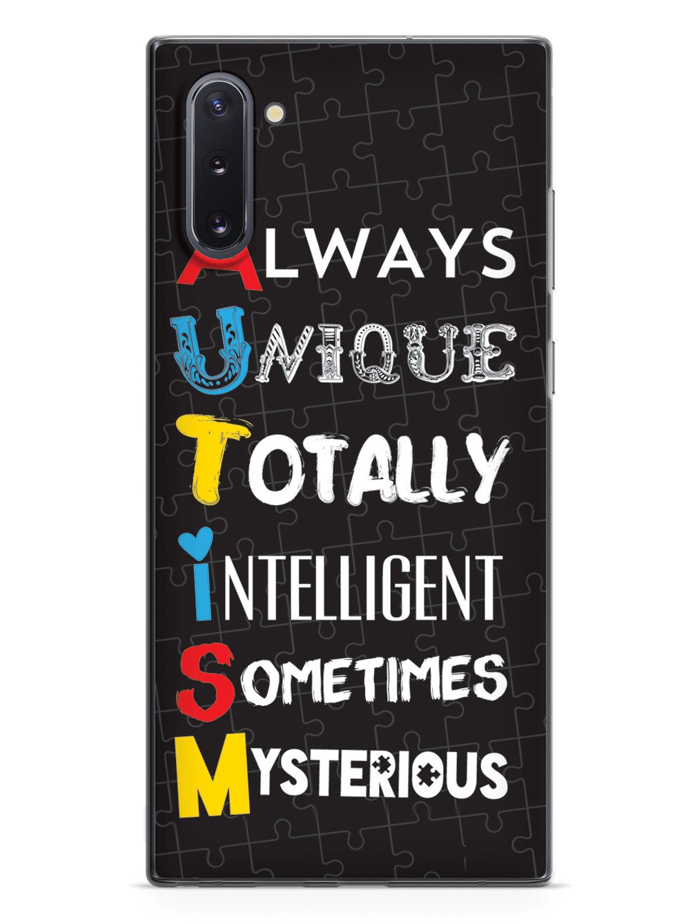 This unique A.U.T.I.S.M - Autism awareness case was creatively designed and printed with a high-quality finish in-house using UV Printing process, where the ink is cured by UV rays to produce sharp and vivid images with a high degree of color accuracy.