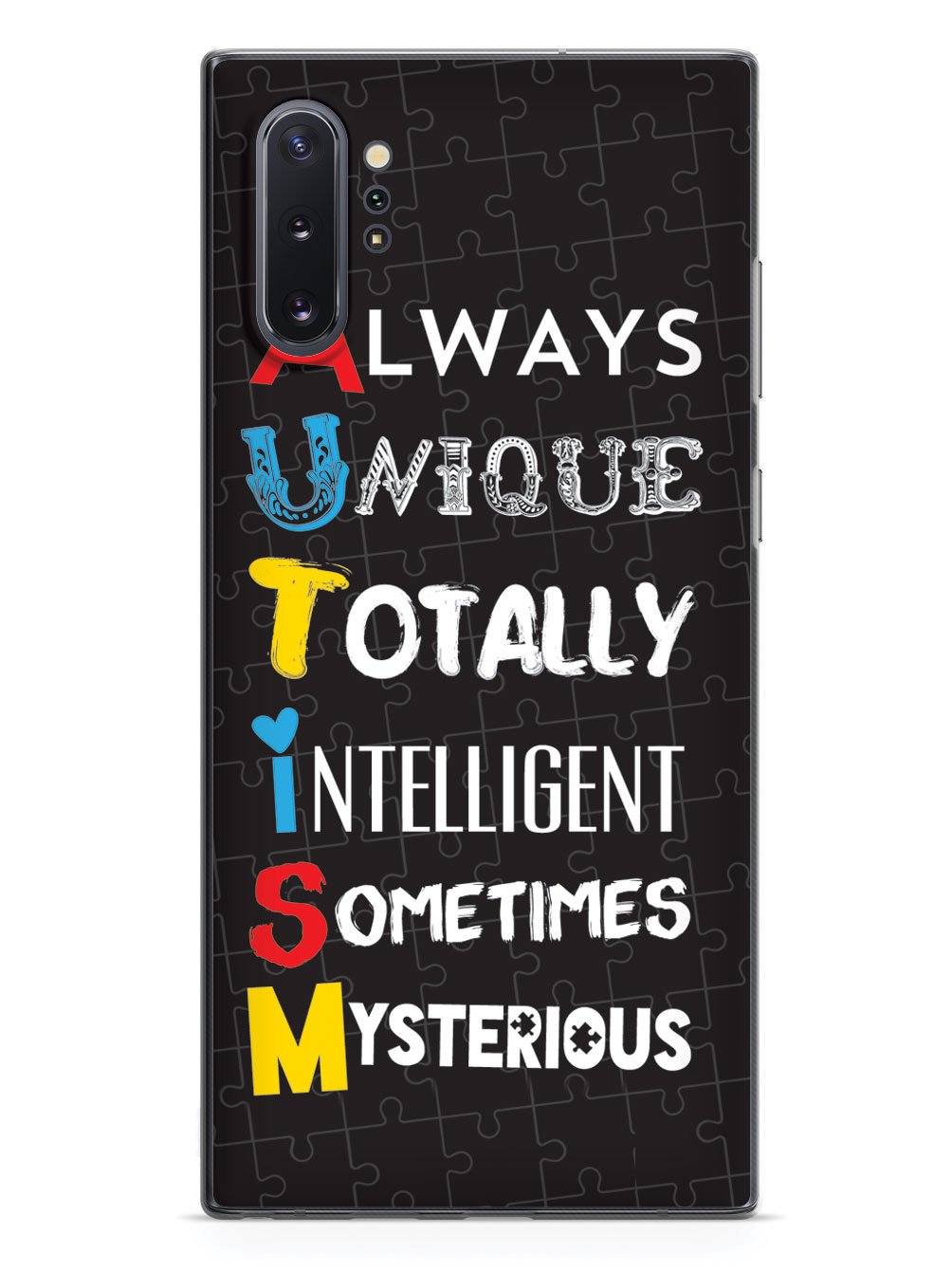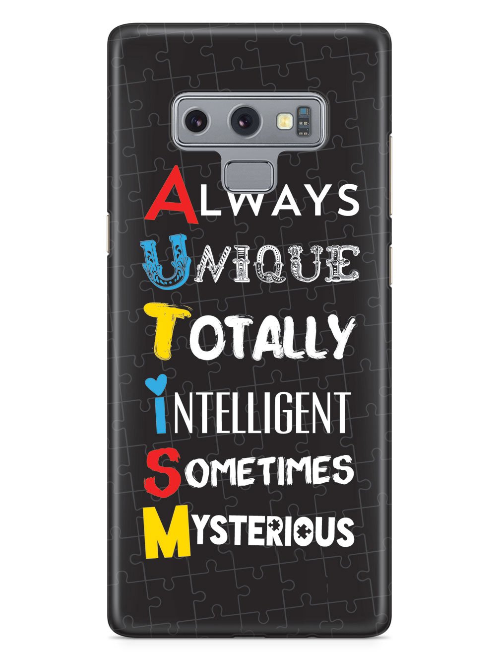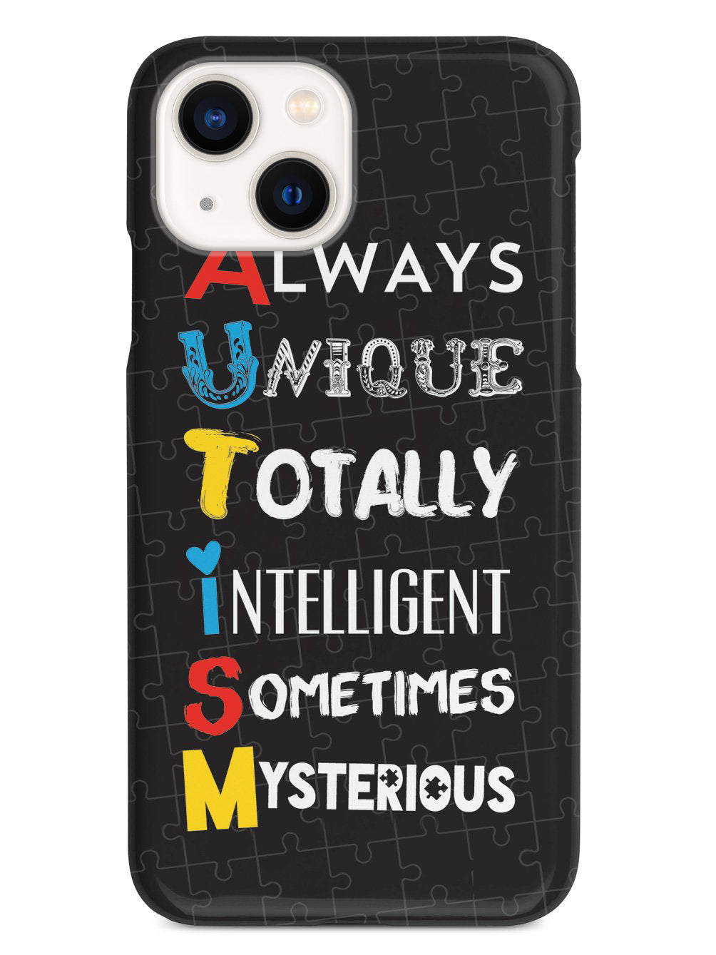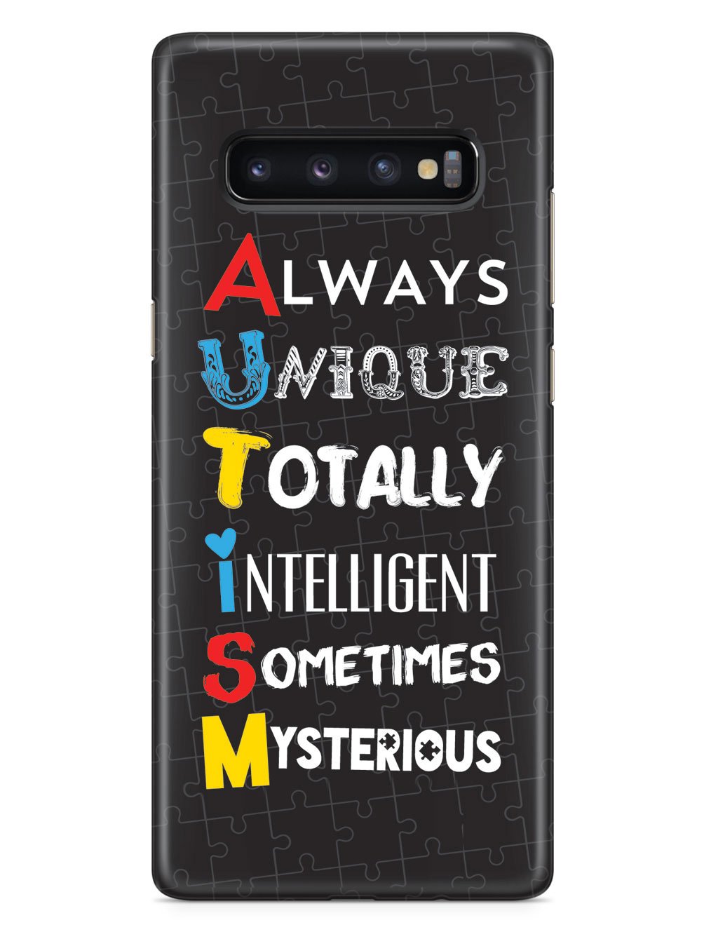 This unique A.U.T.I.S.M - Autism awareness case was creatively designed and printed with a high-quality finish in-house using UV Printing process, where the ink is cured by UV rays to produce sharp and vivid images with a high degree of color accuracy.