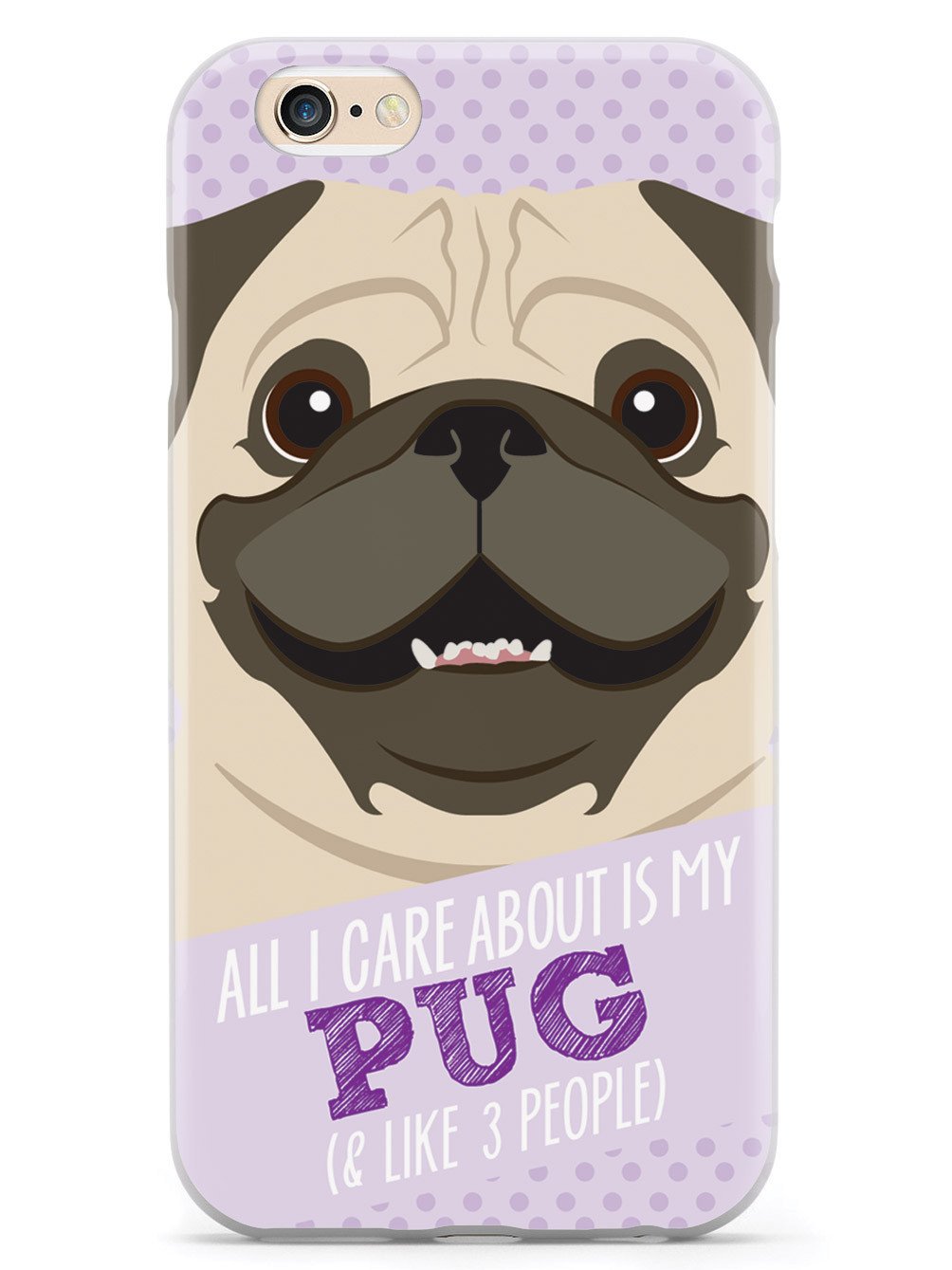 This unique All I Care About Is My Pug case was creatively designed and printed with a high-quality finish in-house using UV Printing process, where the ink is cured by UV rays to produce sharp and vivid images with a high degree of color accuracy.
