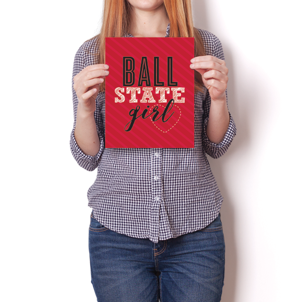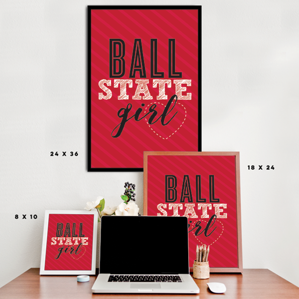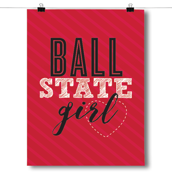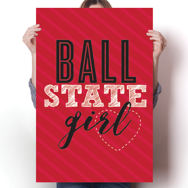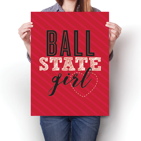 This unique Ball State Girl poster was creatively designed and printed on thick paper with a high-quality finish in-house using UV Printing process, where the ink is cured by UV rays to produce sharp and vivid images with a high degree of color accuracy.