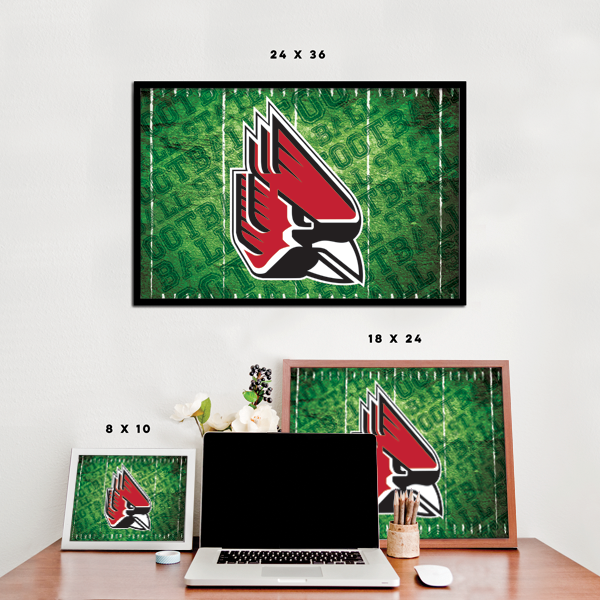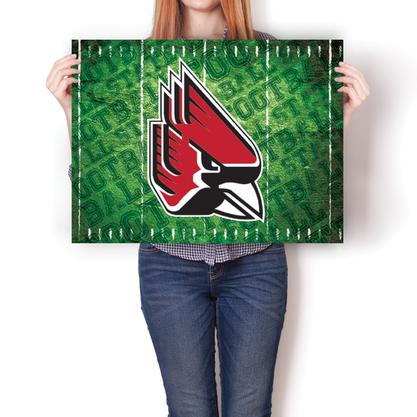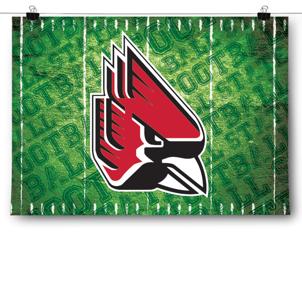 This unique Ball State University - Football poster was creatively designed and printed on thick paper with a high-quality finish in-house using UV Printing process, where the ink is cured by UV rays to produce sharp and vivid images with a high degree of color accuracy.