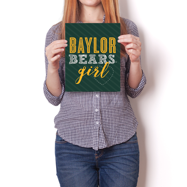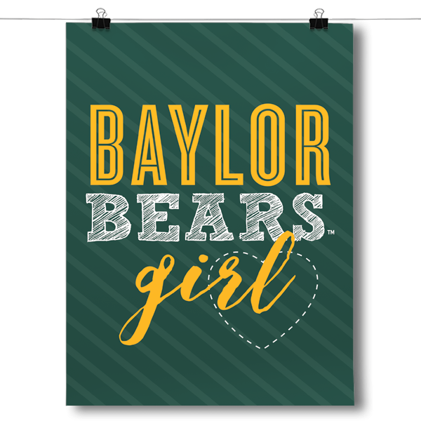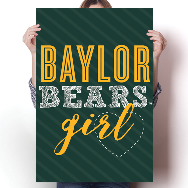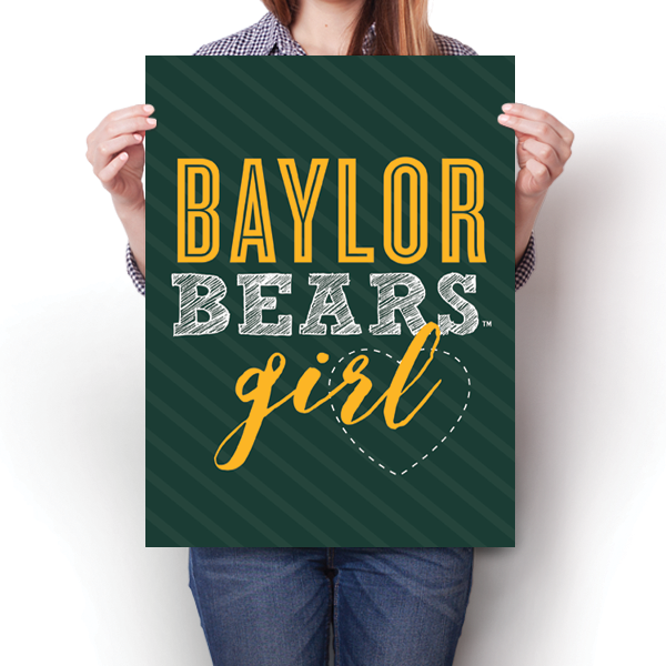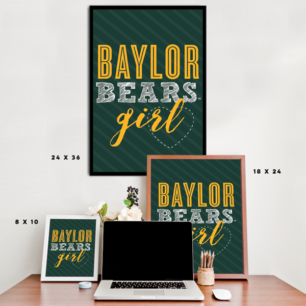 This unique Baylor Bears Girl poster was creatively designed and printed on thick paper with a high-quality finish in-house using UV Printing process, where the ink is cured by UV rays to produce sharp and vivid images with a high degree of color accuracy.
