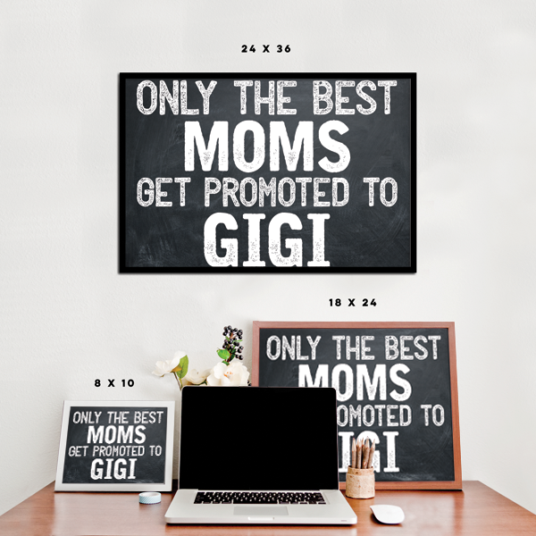 This unique Best Moms Get Promoted - Gigi poster was creatively designed and printed on thick paper with a high-quality finish in-house using UV Printing process, where the ink is cured by UV rays to produce sharp and vivid images with a high degree of color accuracy.