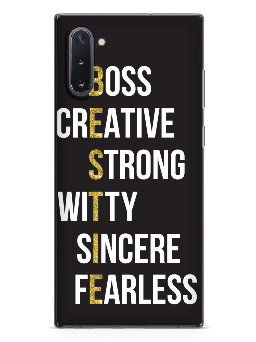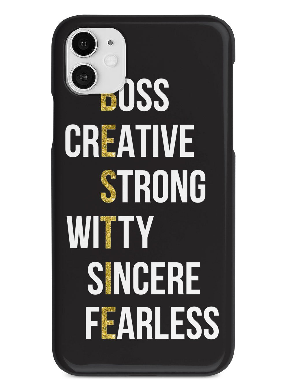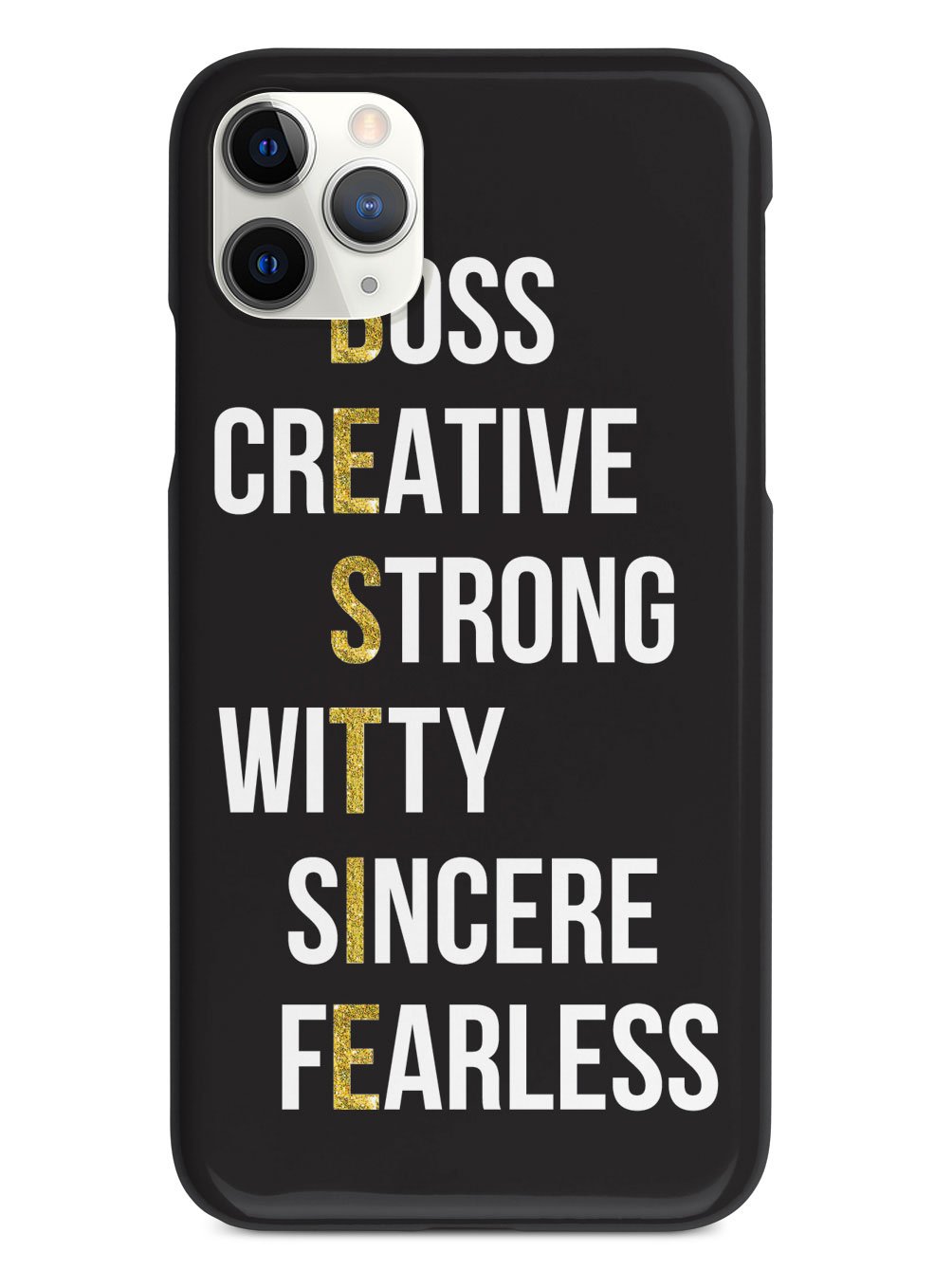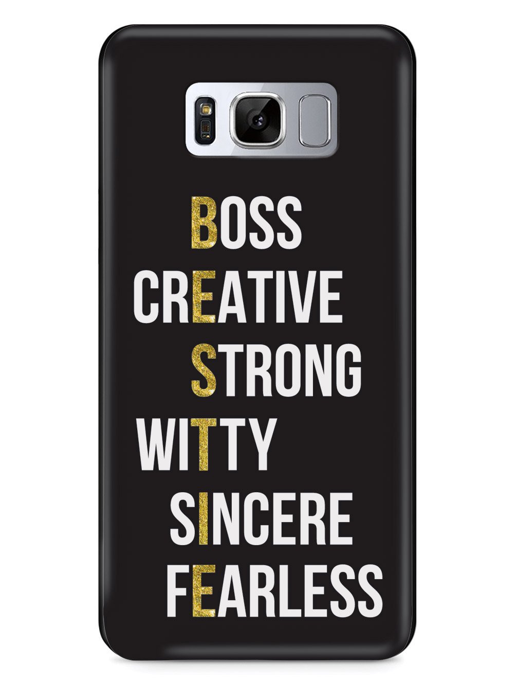 This unique BESTIE - Gold case was creatively designed and printed with a high-quality finish in-house using UV Printing process, where the ink is cured by UV rays to produce sharp and vivid images with a high degree of color accuracy.