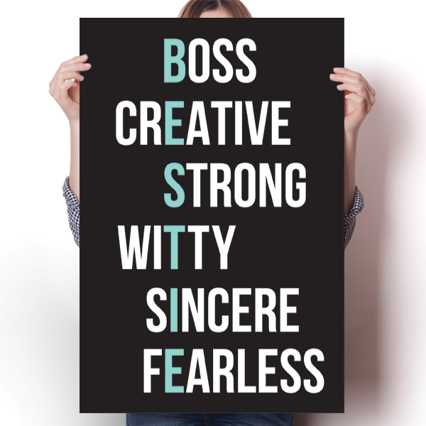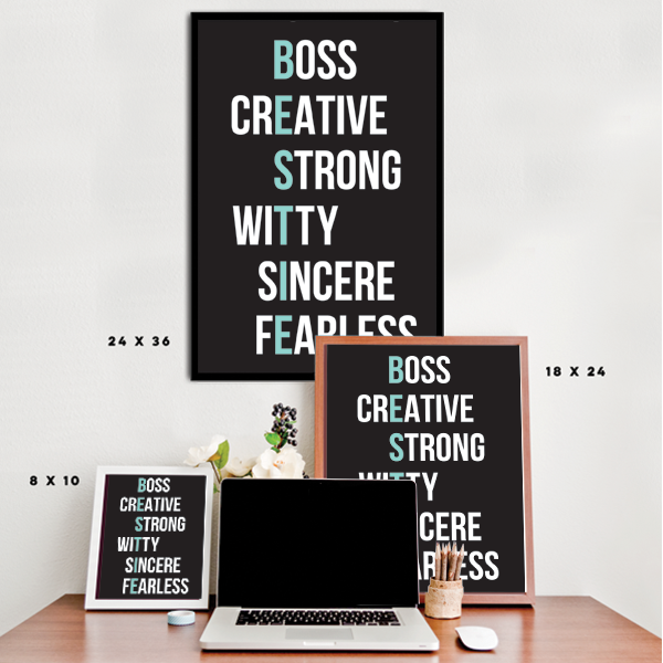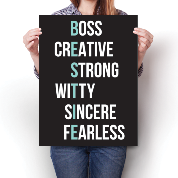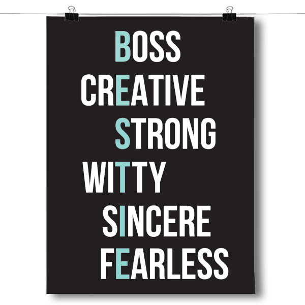 This unique BESTIE - Teal on Black poster was creatively designed and printed on thick paper with a high-quality finish in-house using UV Printing process, where the ink is cured by UV rays to produce sharp and vivid images with a high degree of color accuracy.