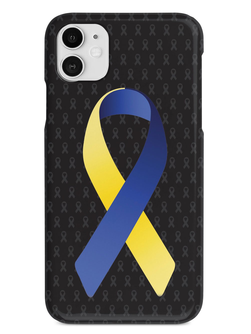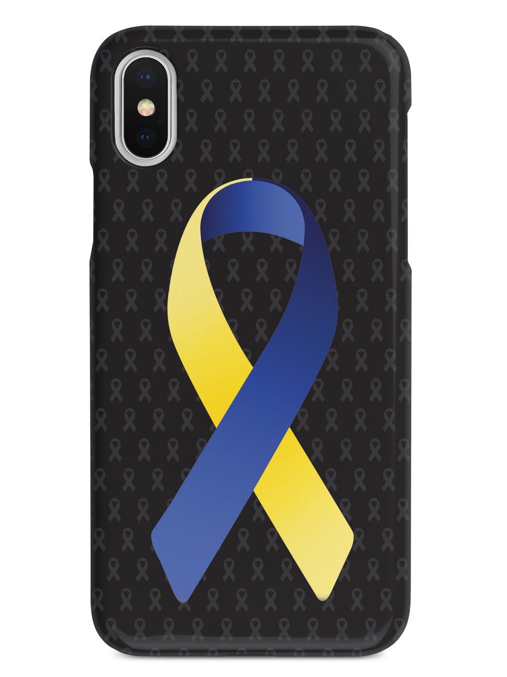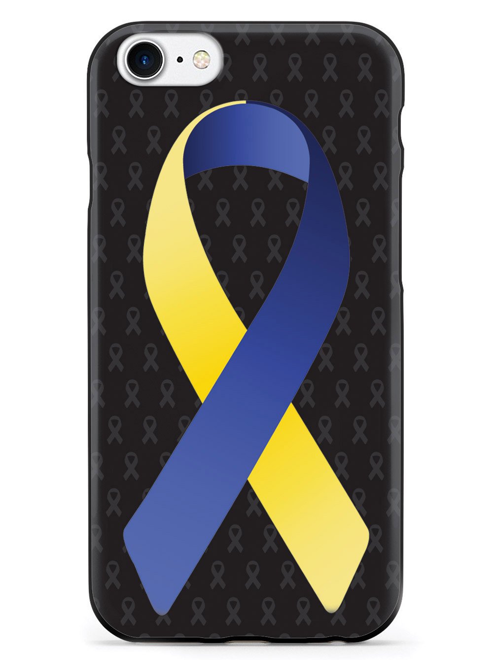 This unique Blue and Yellow Awareness Ribbon - Black case was creatively designed and printed with a high-quality finish in-house using UV Printing process, where the ink is cured by UV rays to produce sharp and vivid images with a high degree of color accuracy.