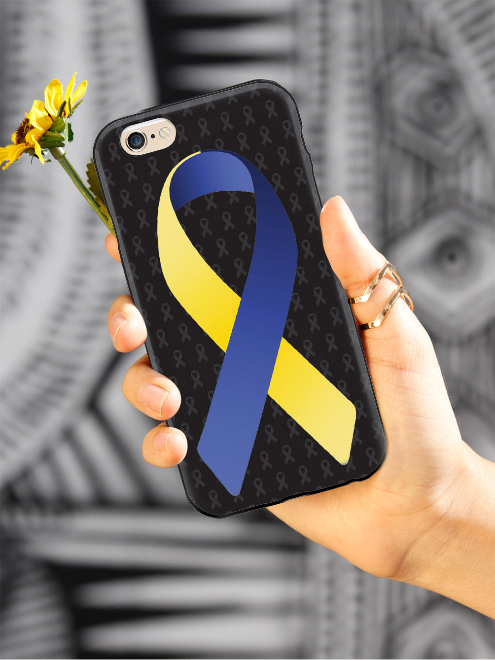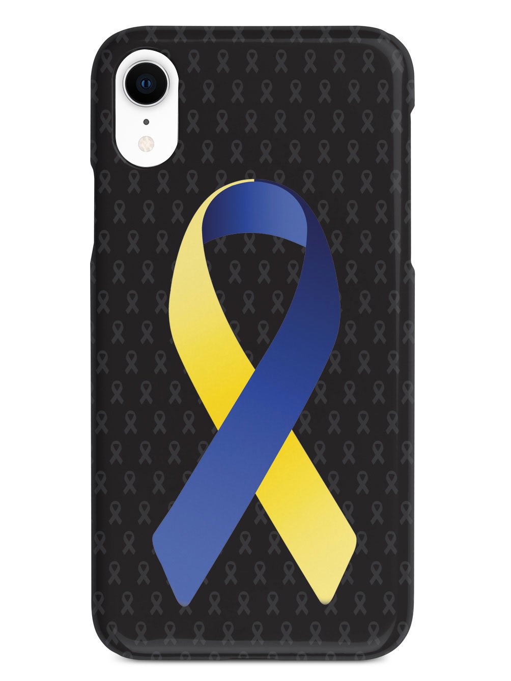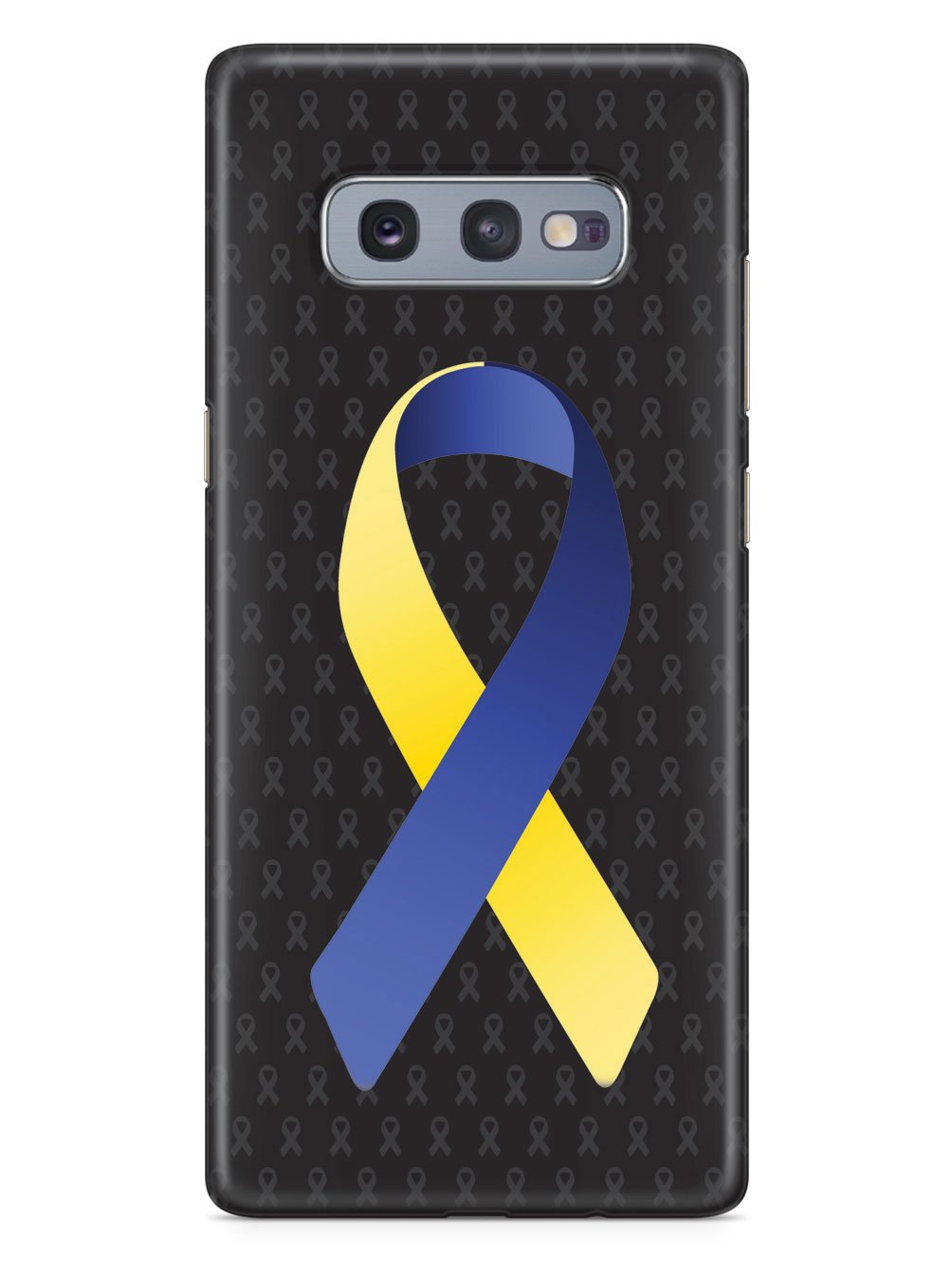 This unique Blue and Yellow Awareness Ribbon - Black case was creatively designed and printed with a high-quality finish in-house using UV Printing process, where the ink is cured by UV rays to produce sharp and vivid images with a high degree of color accuracy.
