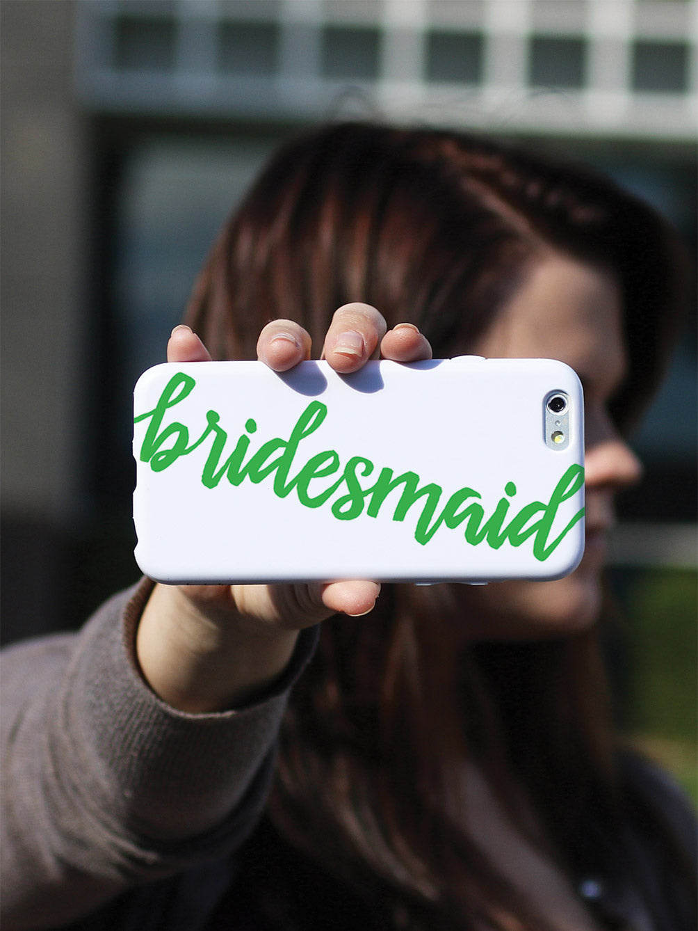 This unique Bridesmaid - Emerald case was creatively designed and printed with a high-quality finish in-house using UV Printing process, where the ink is cured by UV rays to produce sharp and vivid images with a high degree of color accuracy.