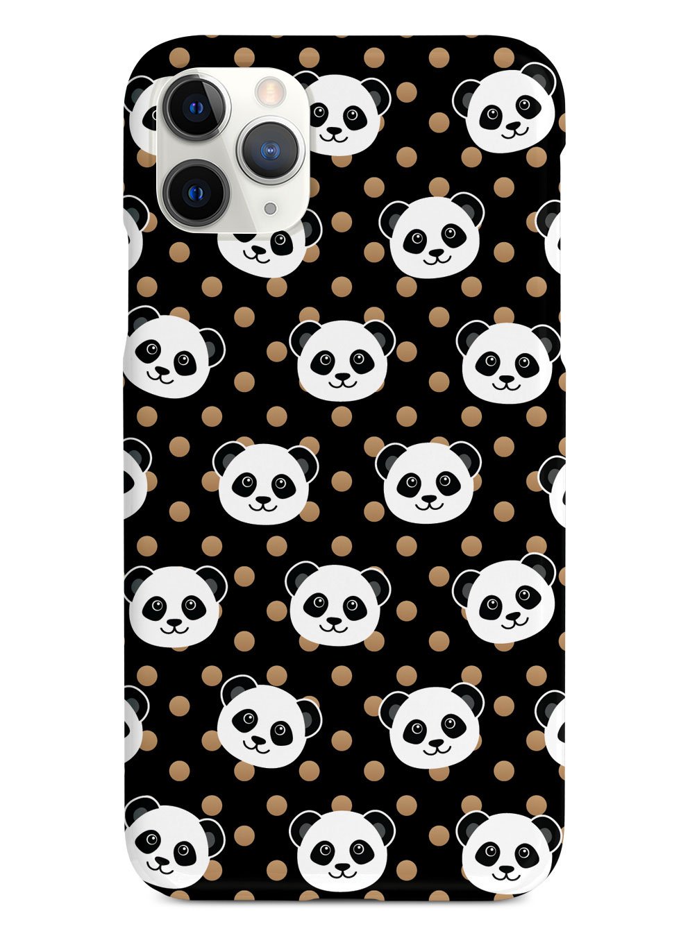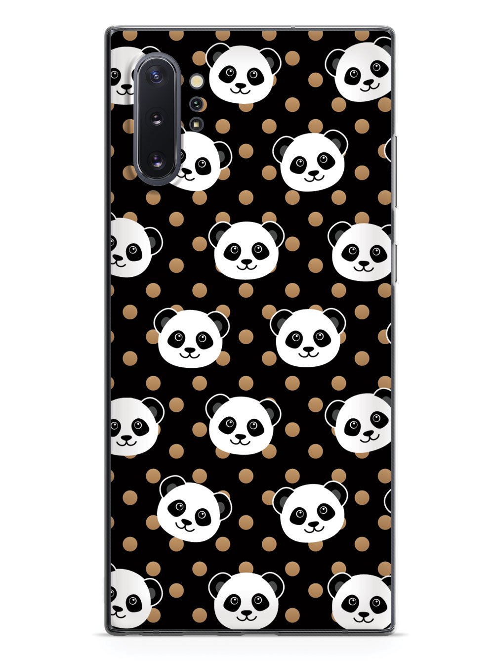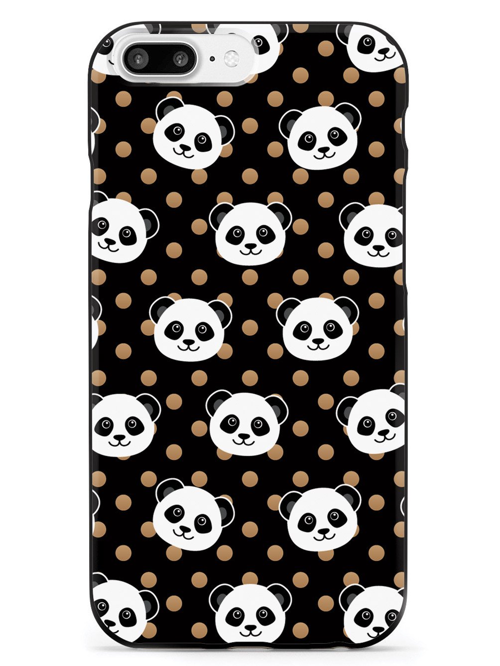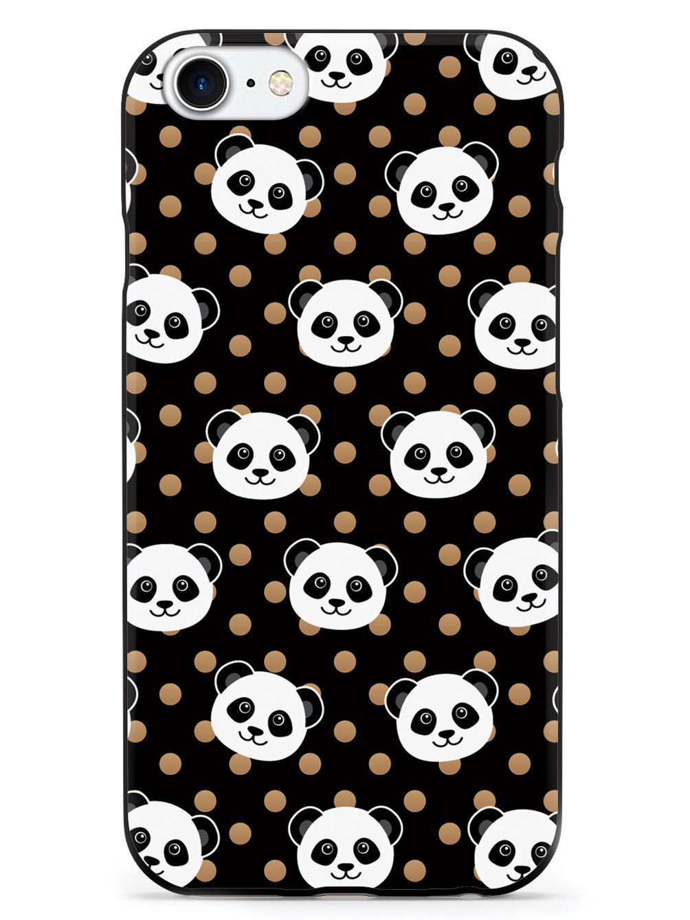 Cute Panda Pattern - Brown Polka Dots - Black Case