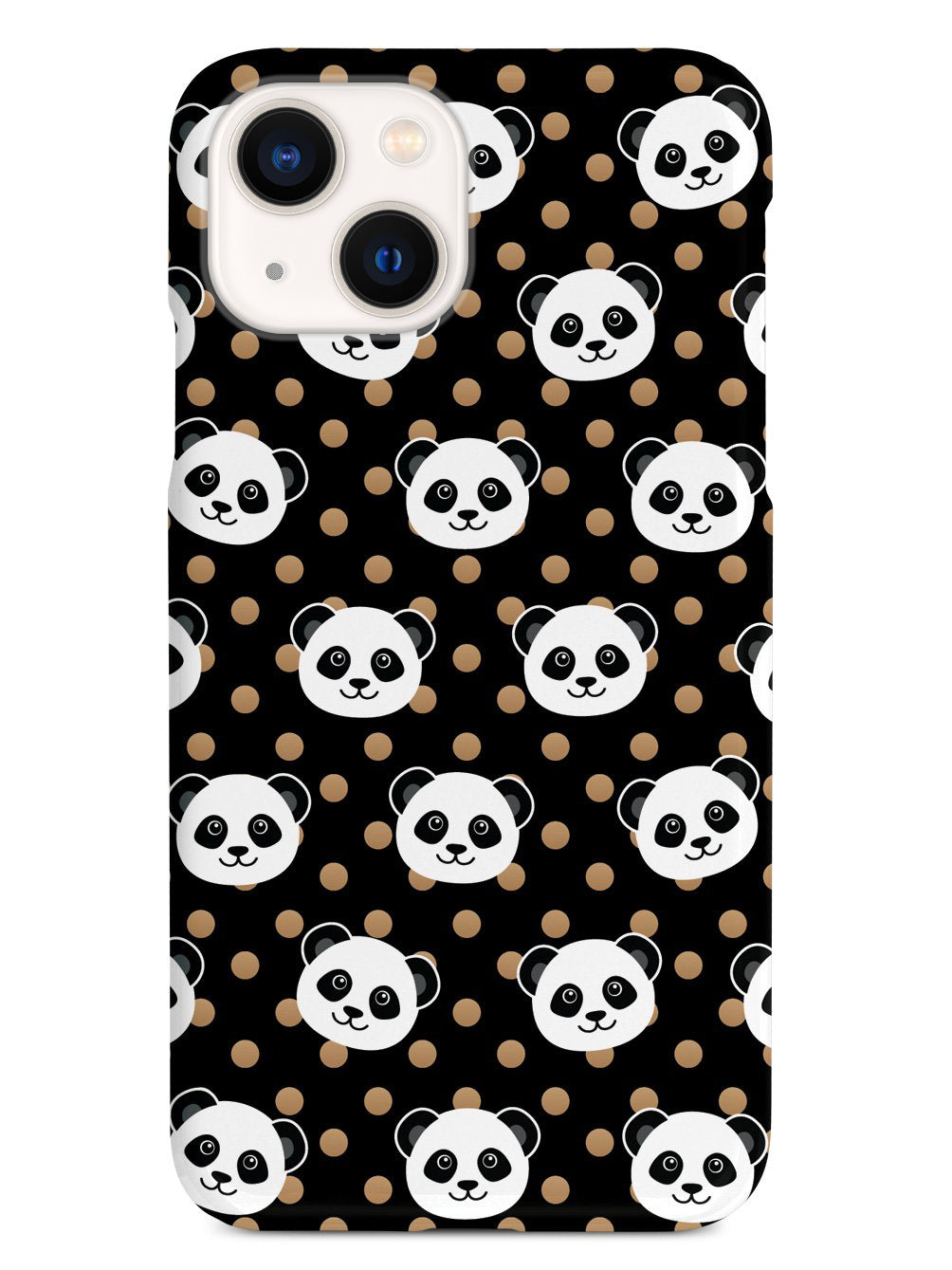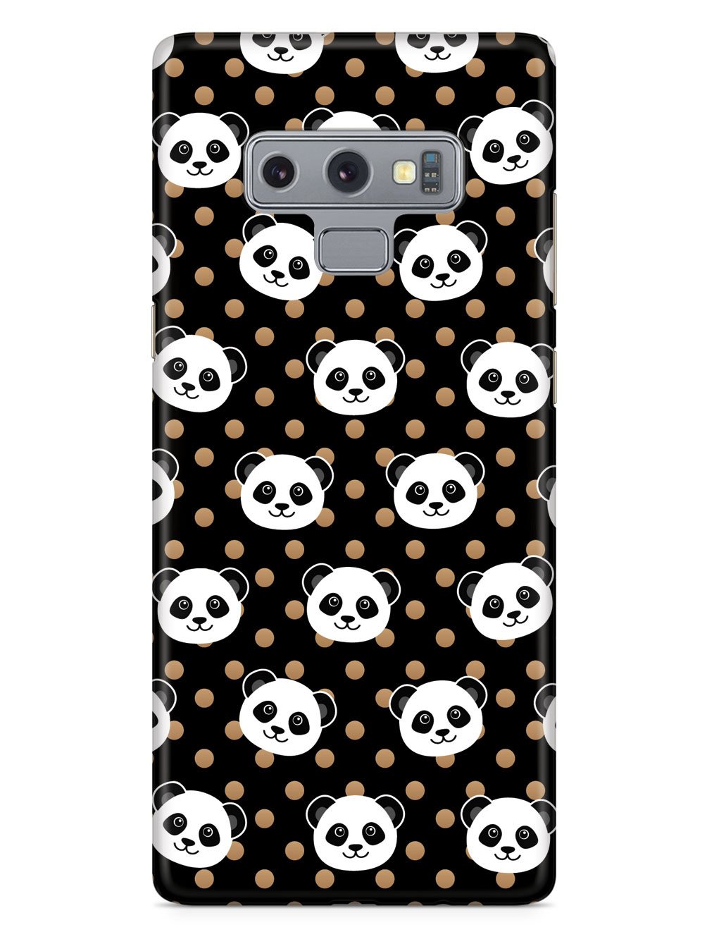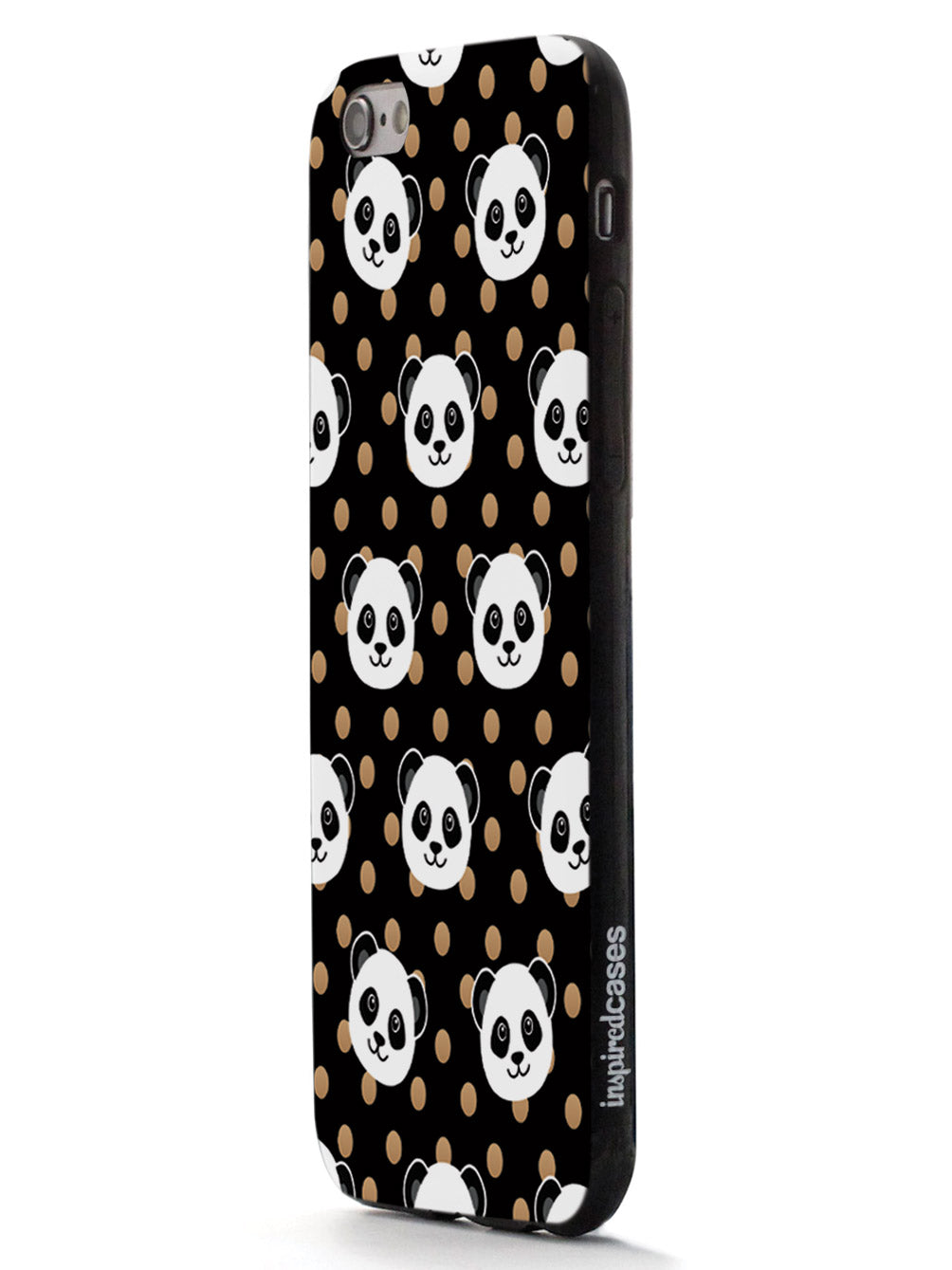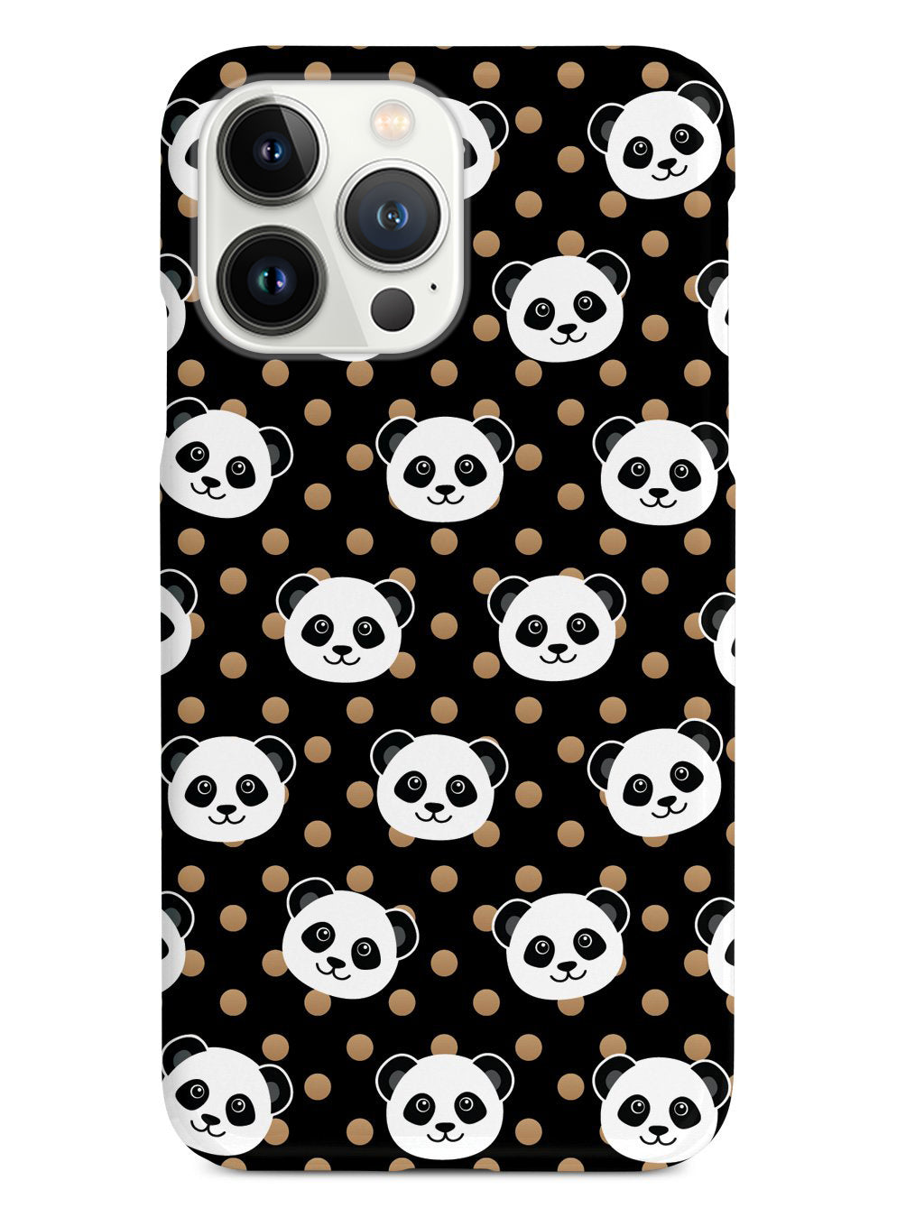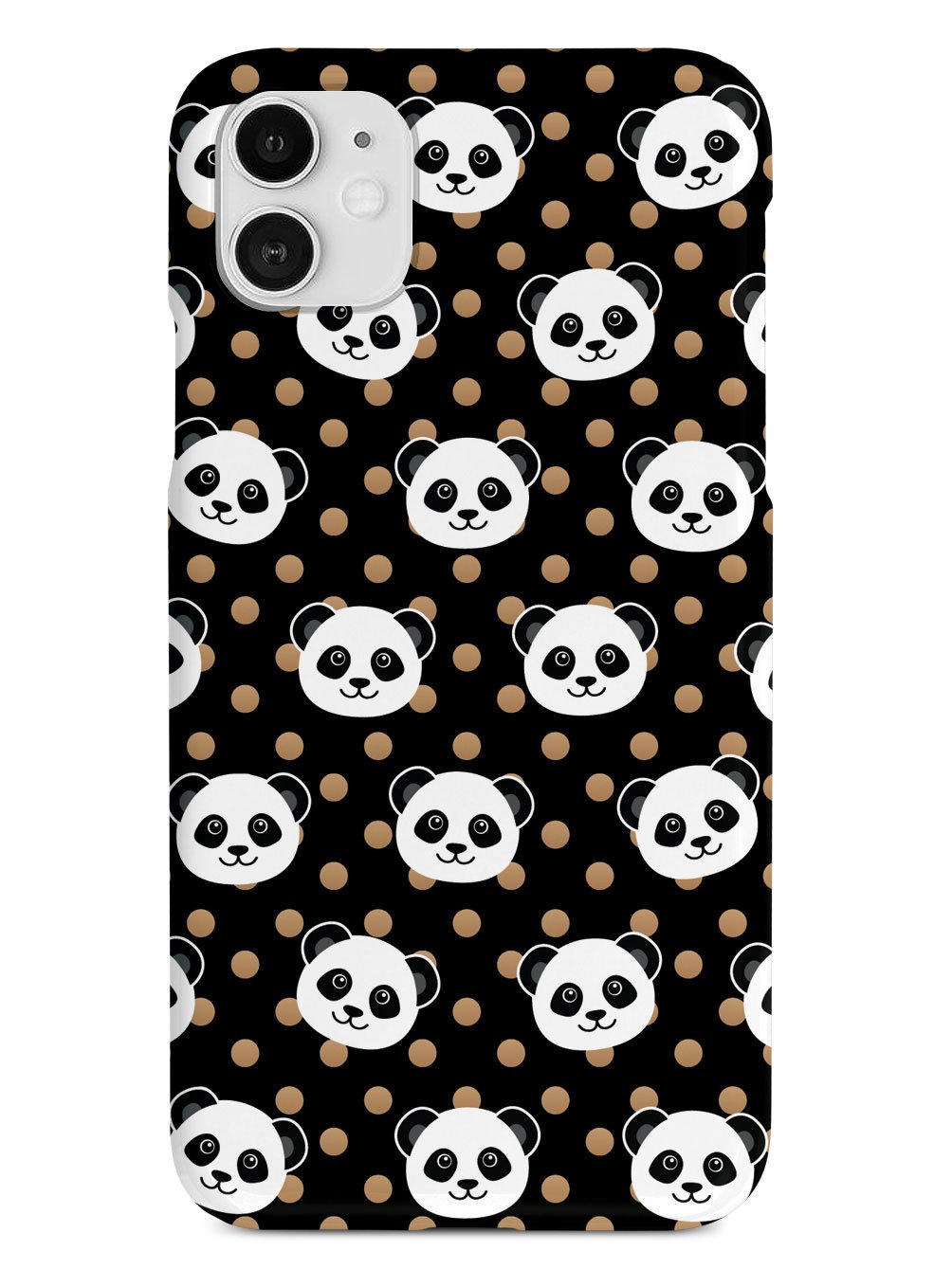 Cute Panda Pattern - Brown Polka Dots - Black Case