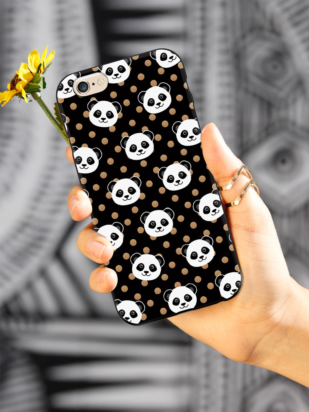 This unique Cute Panda Pattern - Brown Polka Dots - Black case was creatively designed and printed with a high-quality finish in-house using UV Printing process, where the ink is cured by UV rays to produce sharp and vivid images with a high degree of color accuracy.
