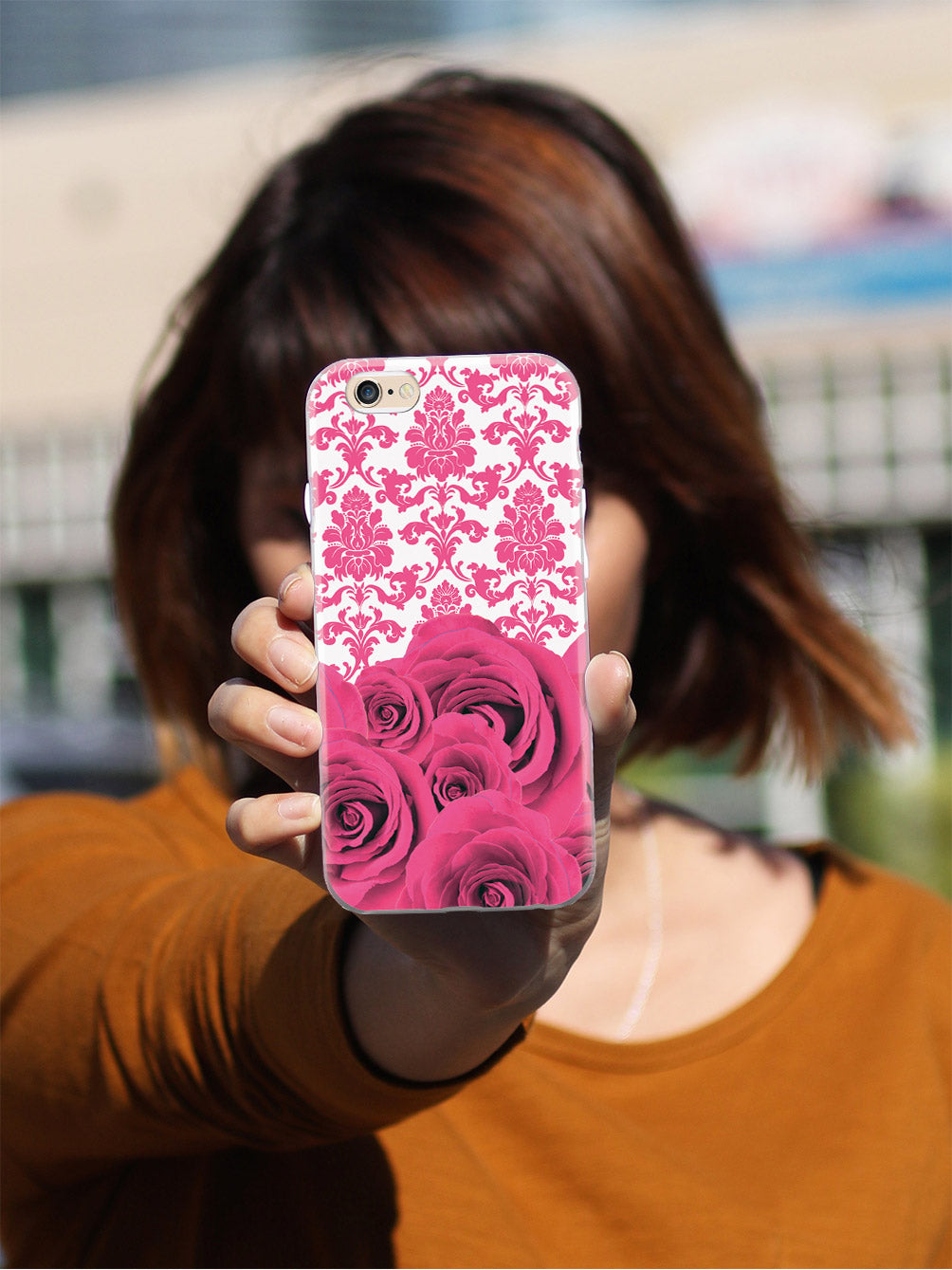This unique Damask and Roses - Pink case was creatively designed and printed with a high-quality finish in-house using UV Printing process, where the ink is cured by UV rays to produce sharp and vivid images with a high degree of color accuracy.