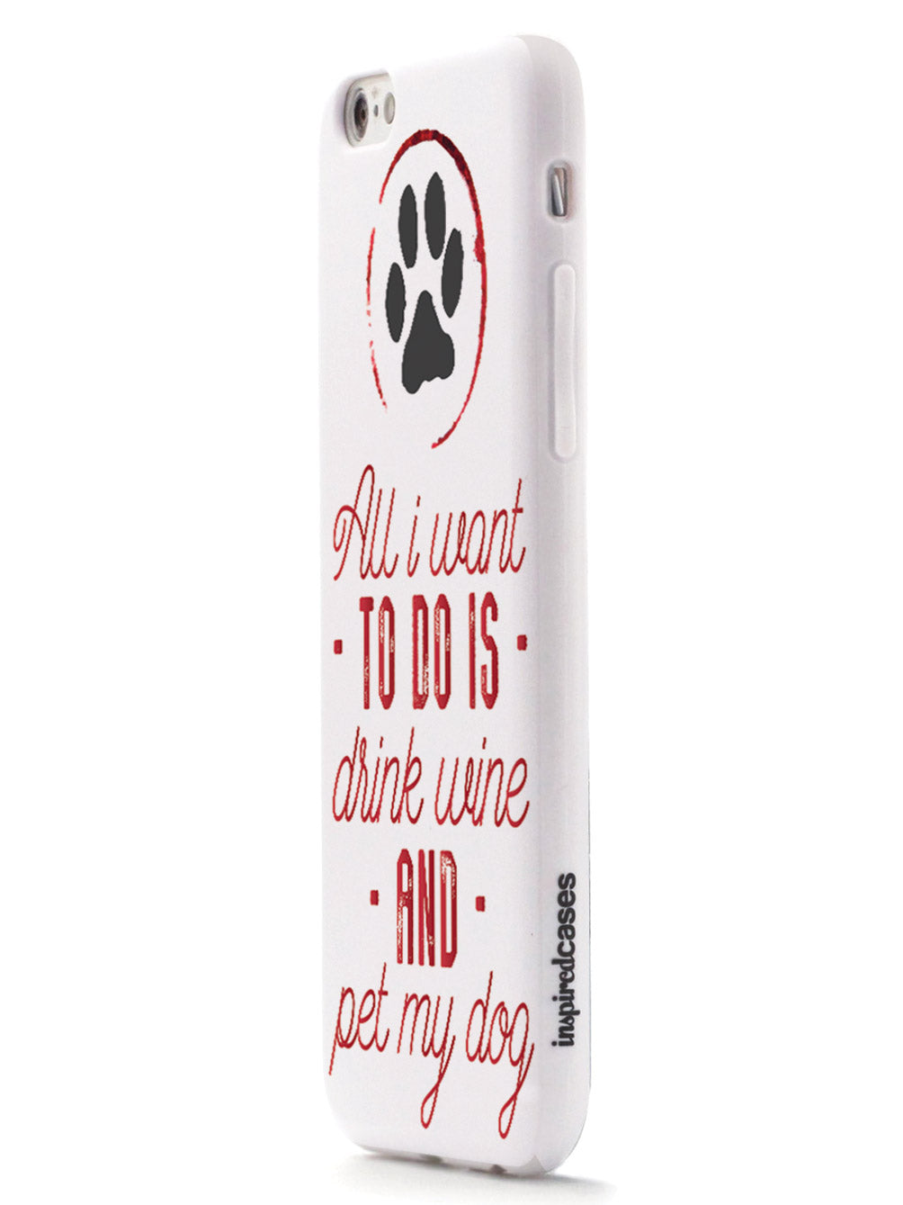 This unique Drink Wine and Pet My Dog case was creatively designed and printed with a high-quality finish in-house using UV Printing process, where the ink is cured by UV rays to produce sharp and vivid images with a high degree of color accuracy.