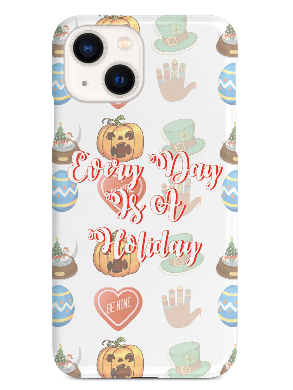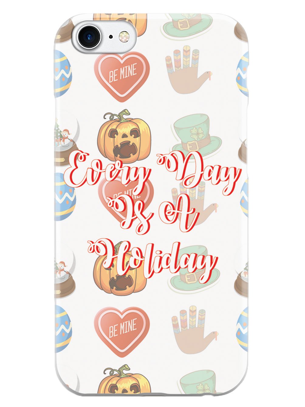 This unique Every Day Is A Holiday - White case was creatively designed and printed with a high-quality finish in-house using UV Printing process, where the ink is cured by UV rays to produce sharp and vivid images with a high degree of color accuracy.