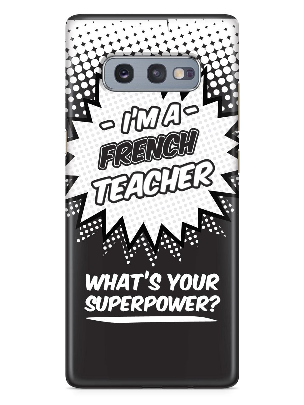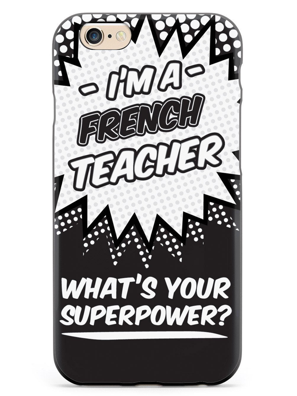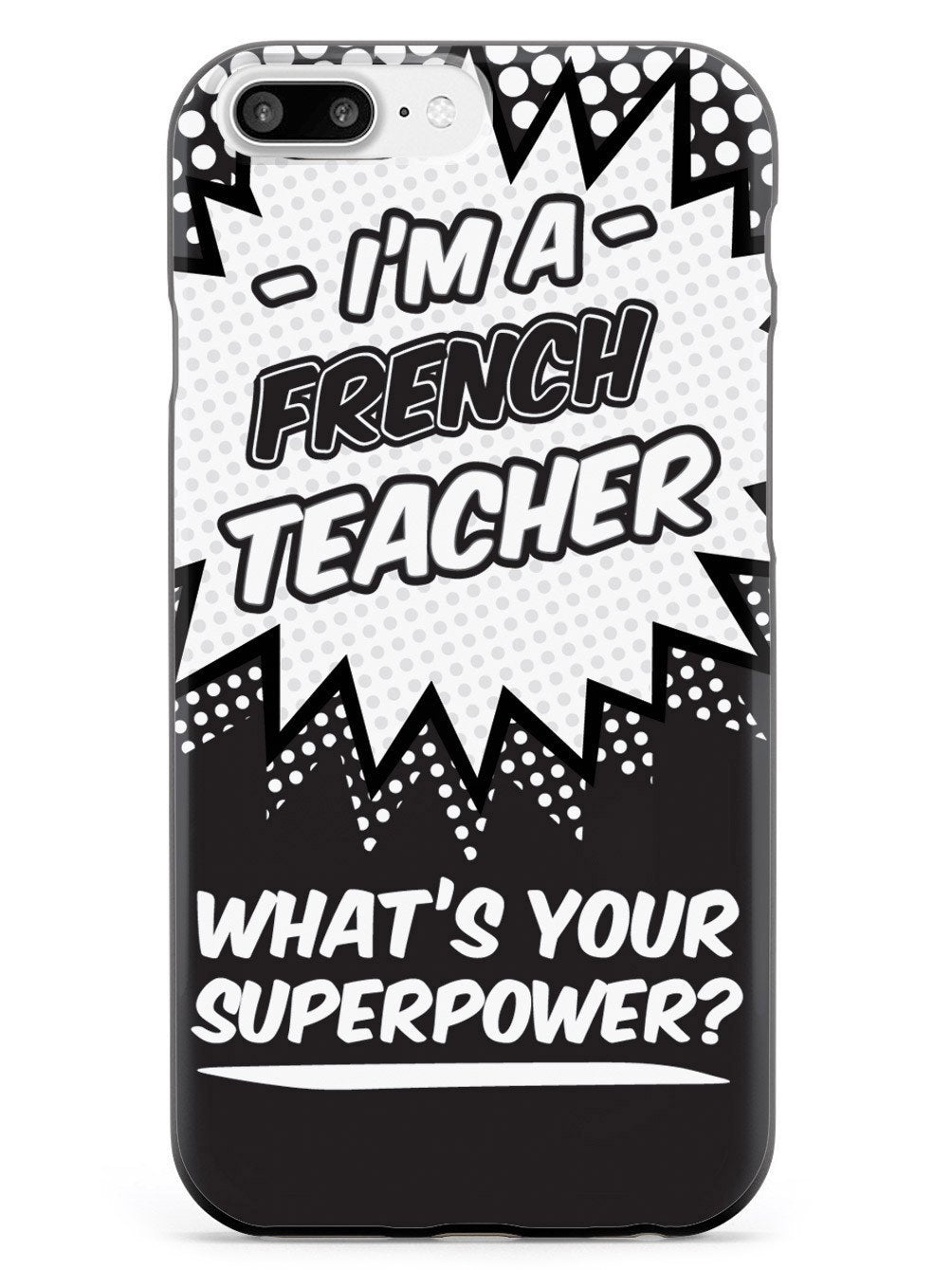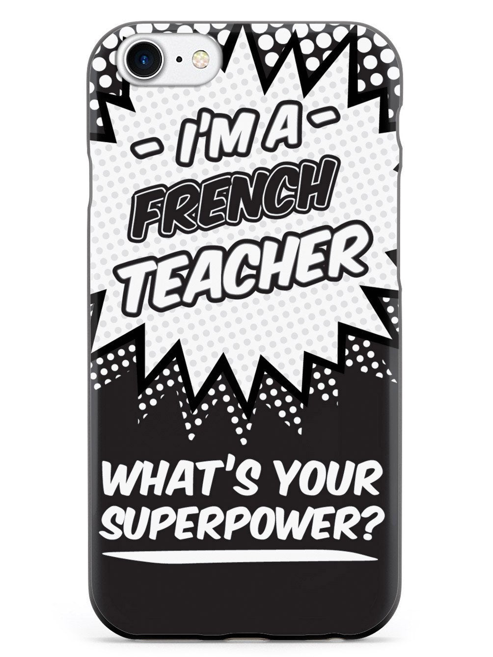 This unique French Teacher - What's Your Superpower? case was creatively designed and printed with a high-quality finish in-house using UV Printing process, where the ink is cured by UV rays to produce sharp and vivid images with a high degree of color accuracy.