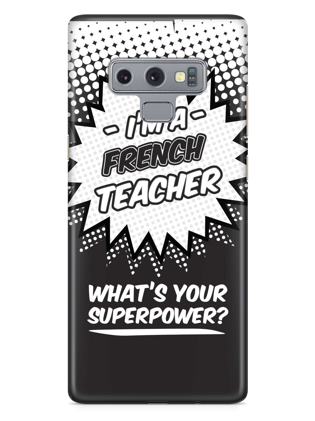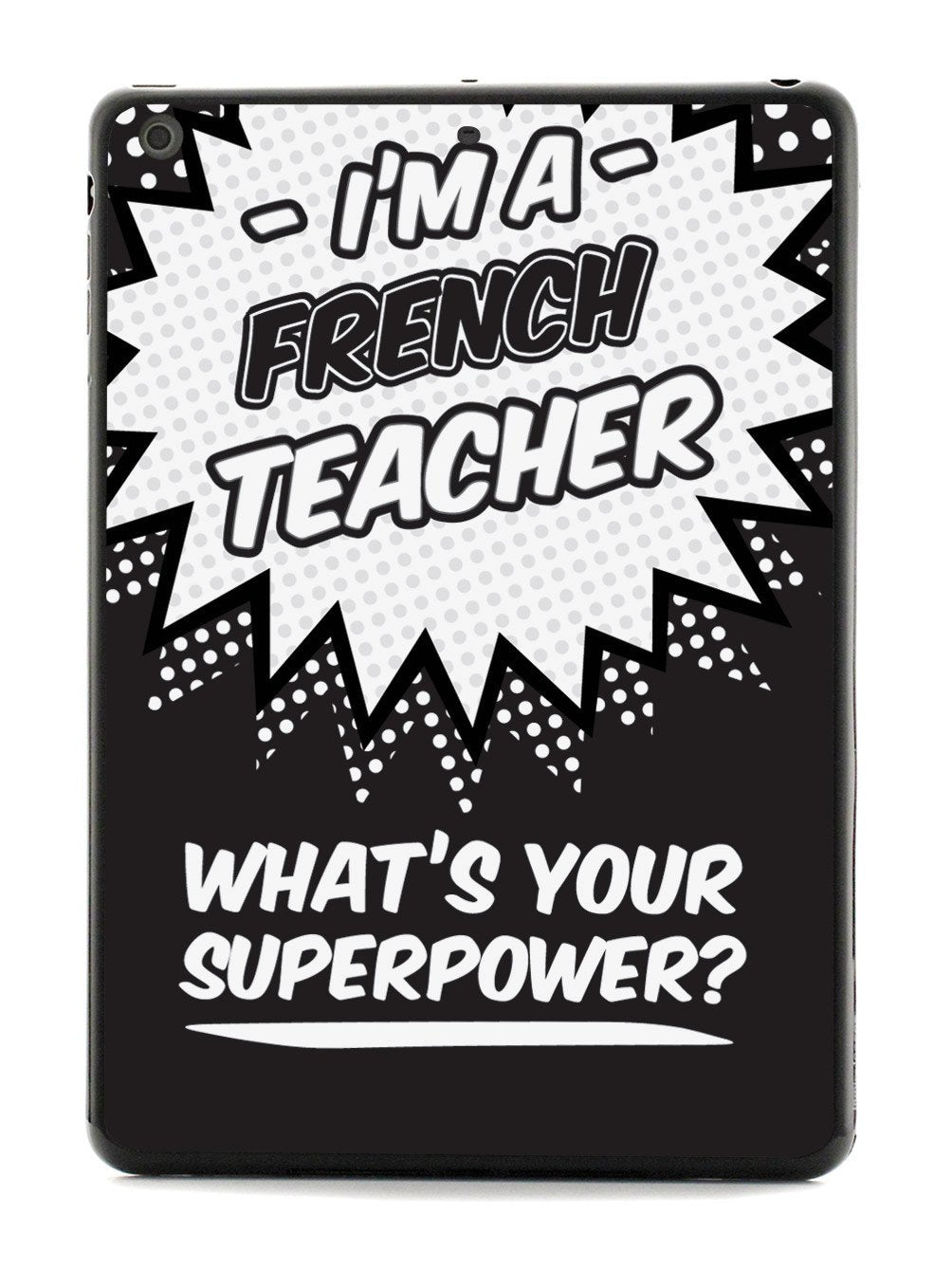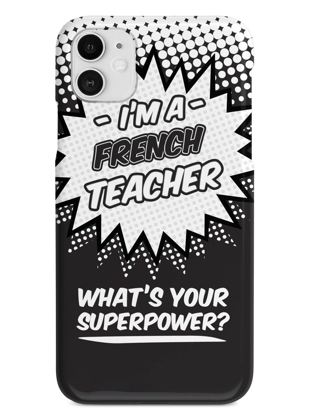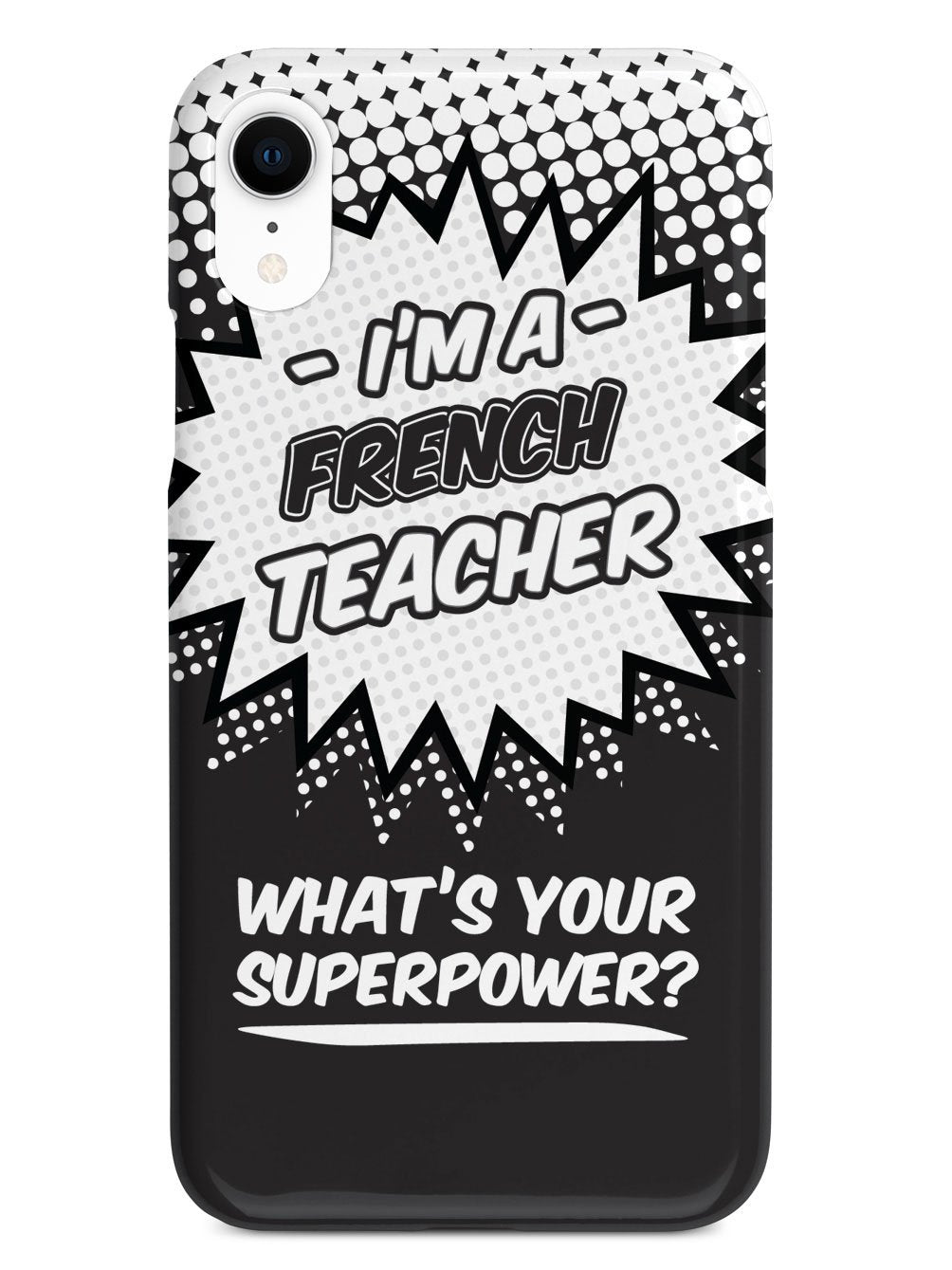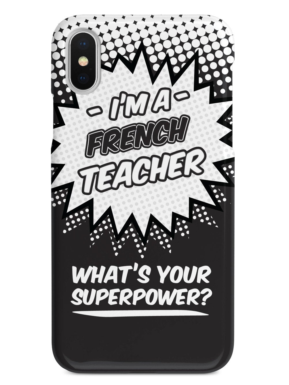 This unique French Teacher - What's Your Superpower? case was creatively designed and printed with a high-quality finish in-house using UV Printing process, where the ink is cured by UV rays to produce sharp and vivid images with a high degree of color accuracy.