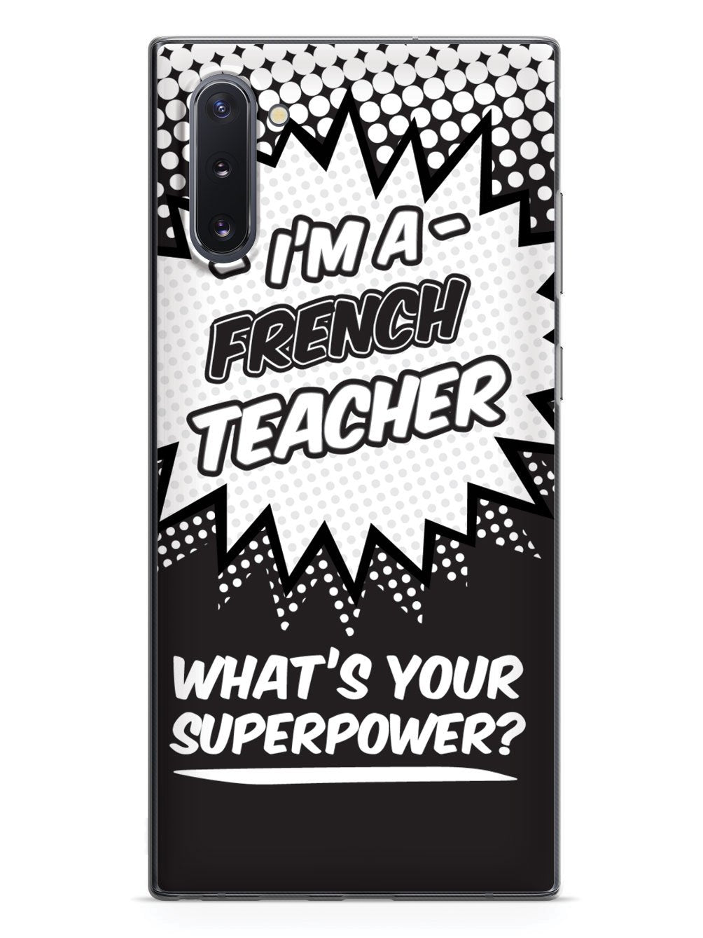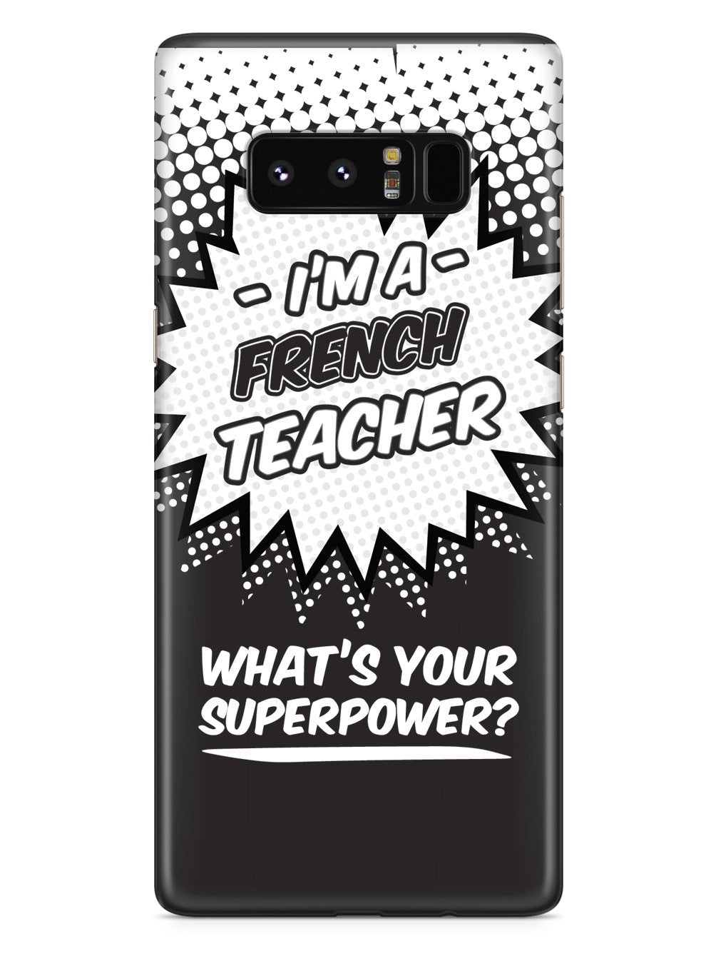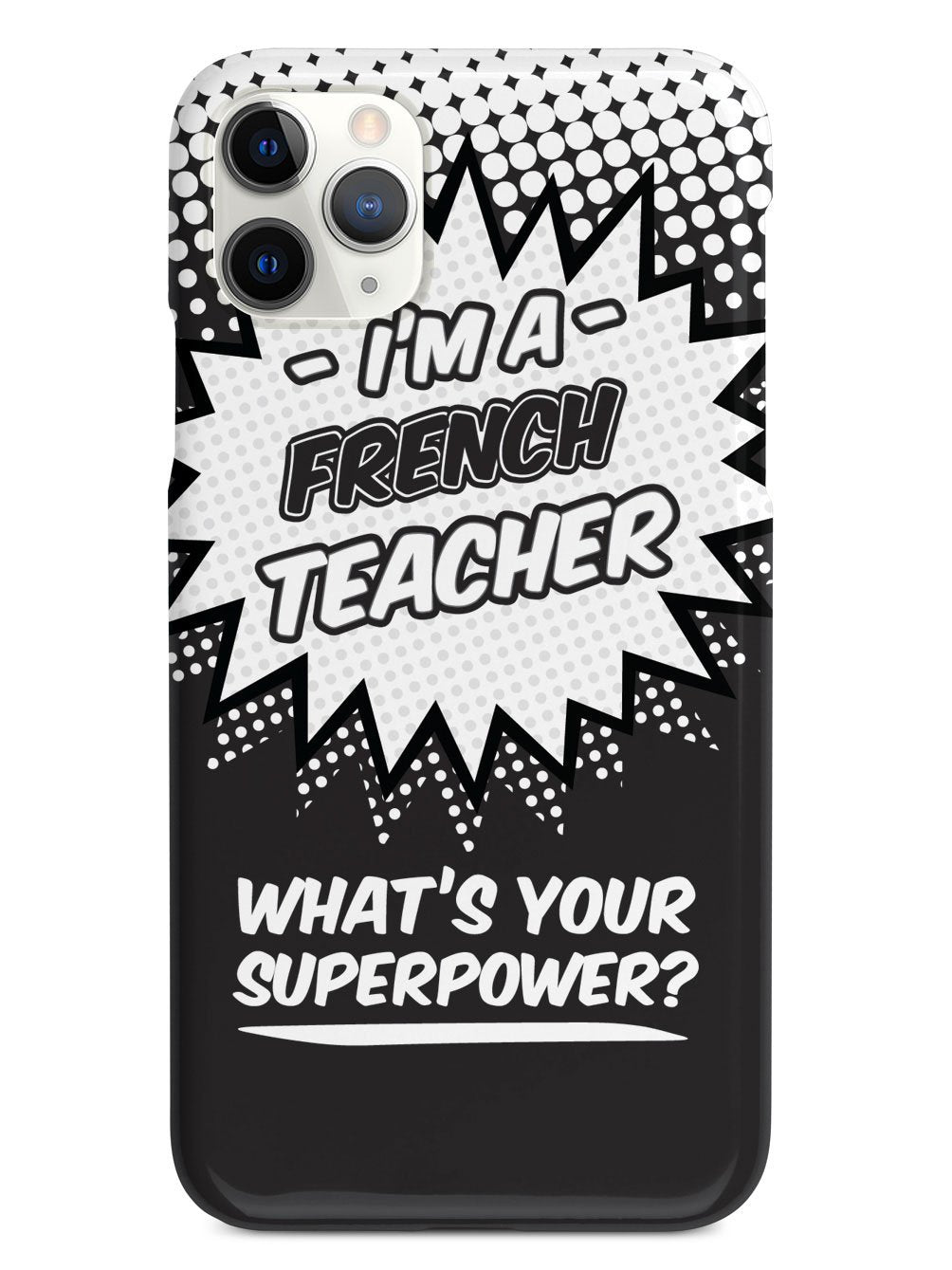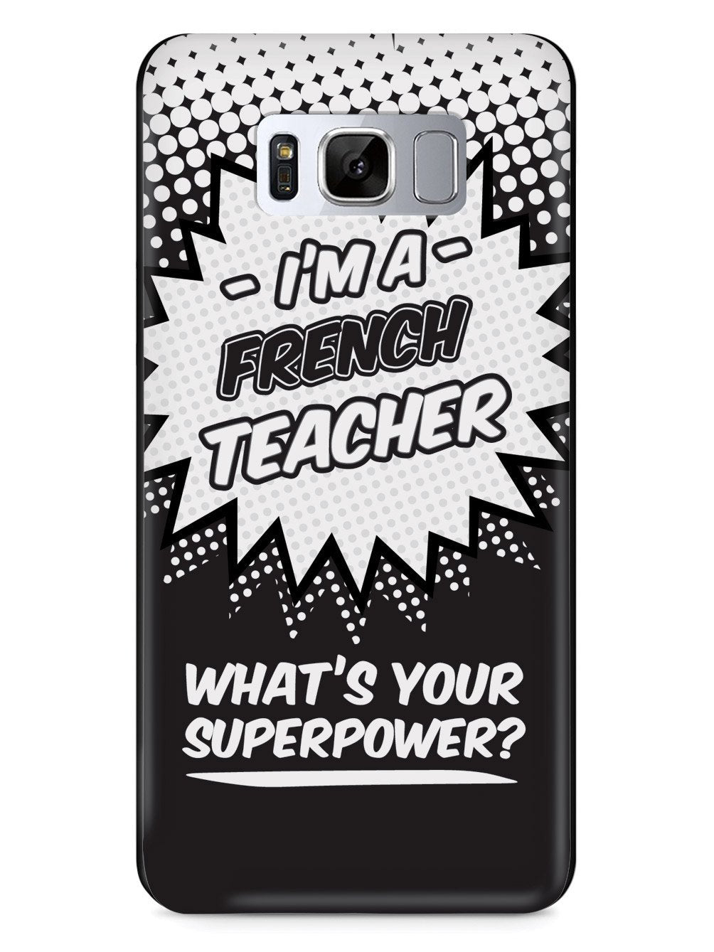 This unique French Teacher - What's Your Superpower? case was creatively designed and printed with a high-quality finish in-house using UV Printing process, where the ink is cured by UV rays to produce sharp and vivid images with a high degree of color accuracy.