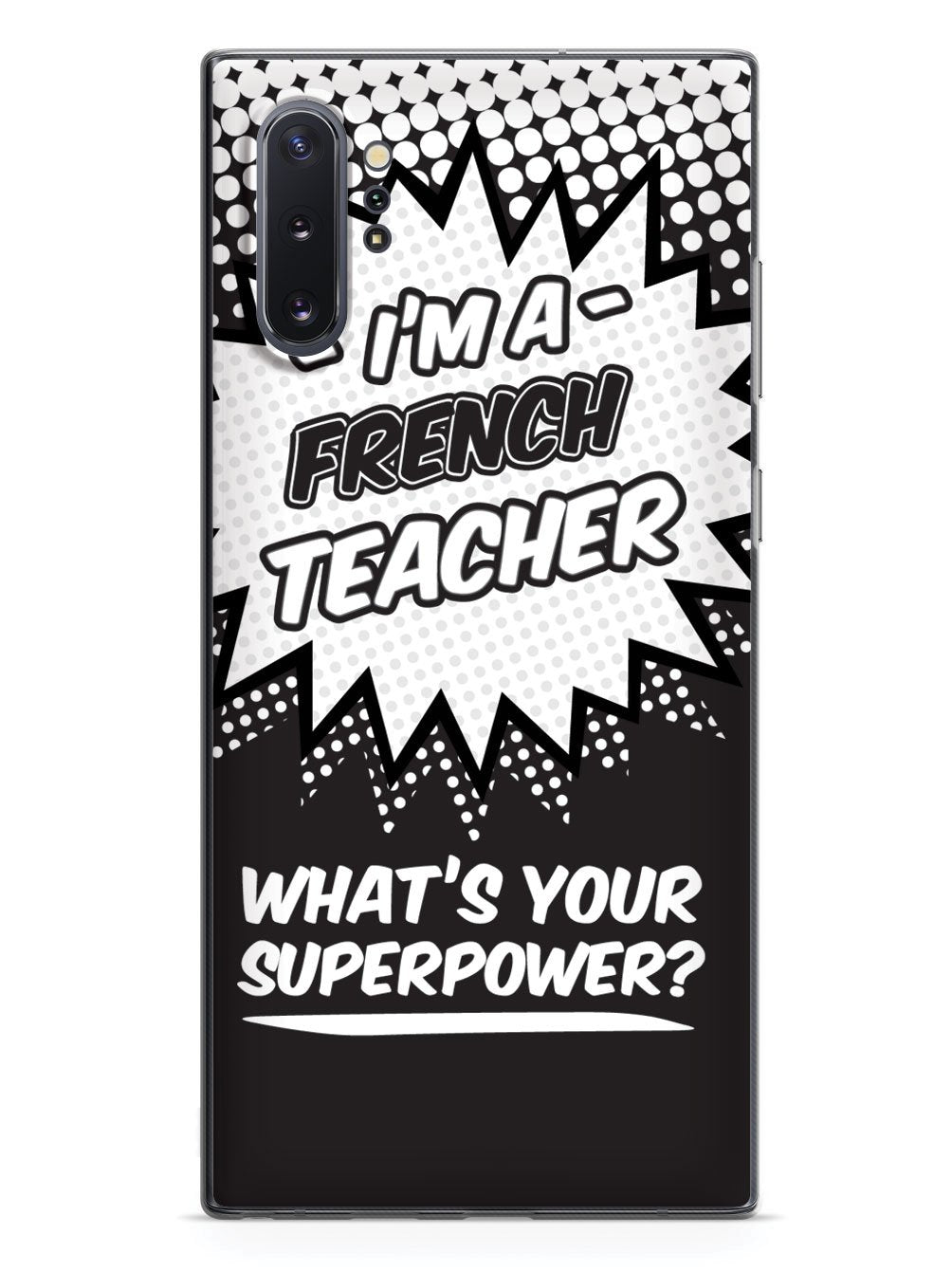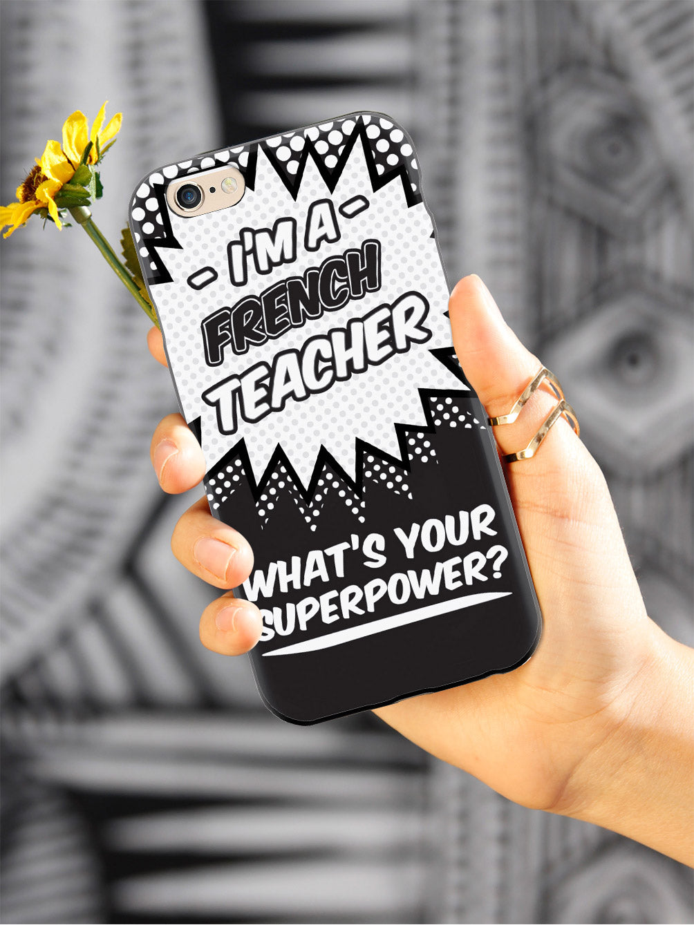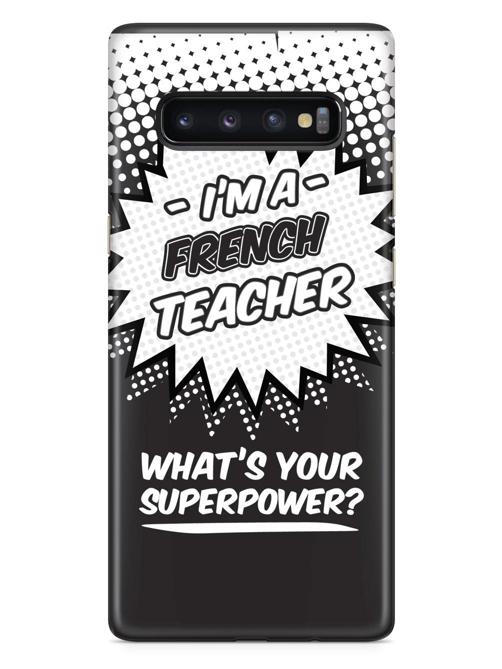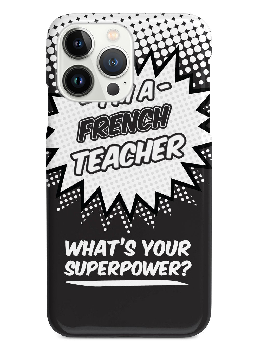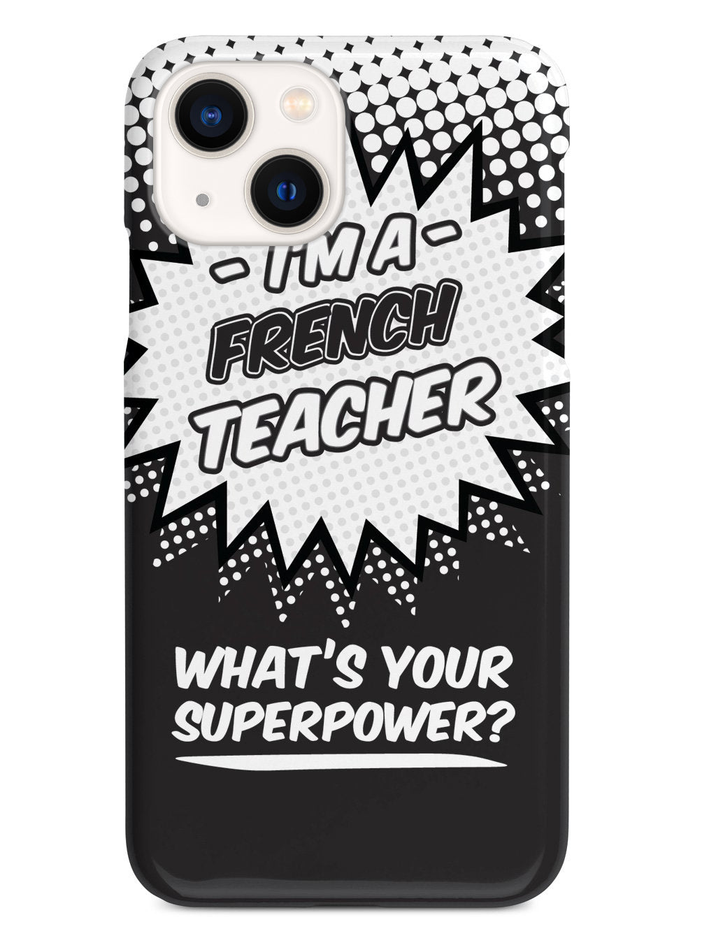 This unique French Teacher - What's Your Superpower? case was creatively designed and printed with a high-quality finish in-house using UV Printing process, where the ink is cured by UV rays to produce sharp and vivid images with a high degree of color accuracy.