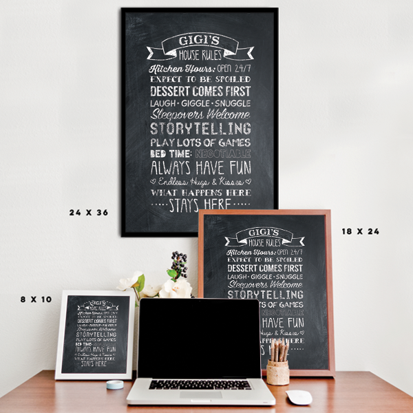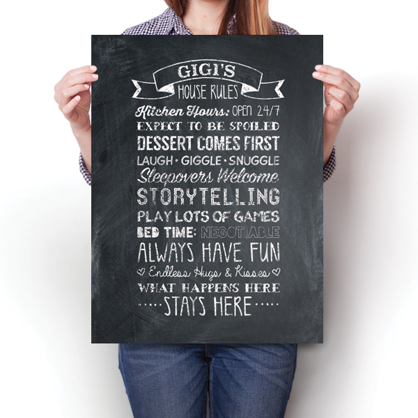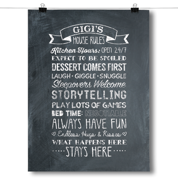 This unique Gigi's House Rules poster was creatively designed and printed on thick paper with a high-quality finish in-house using UV Printing process, where the ink is cured by UV rays to produce sharp and vivid images with a high degree of color accuracy.