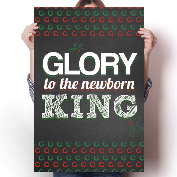 This unique Glory To The Newborn King poster was creatively designed and printed on thick paper with a high-quality finish in-house using UV Printing process, where the ink is cured by UV rays to produce sharp and vivid images with a high degree of color accuracy.