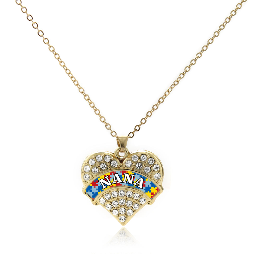 Gold Autism Nana Pave Heart Charm Classic Necklace