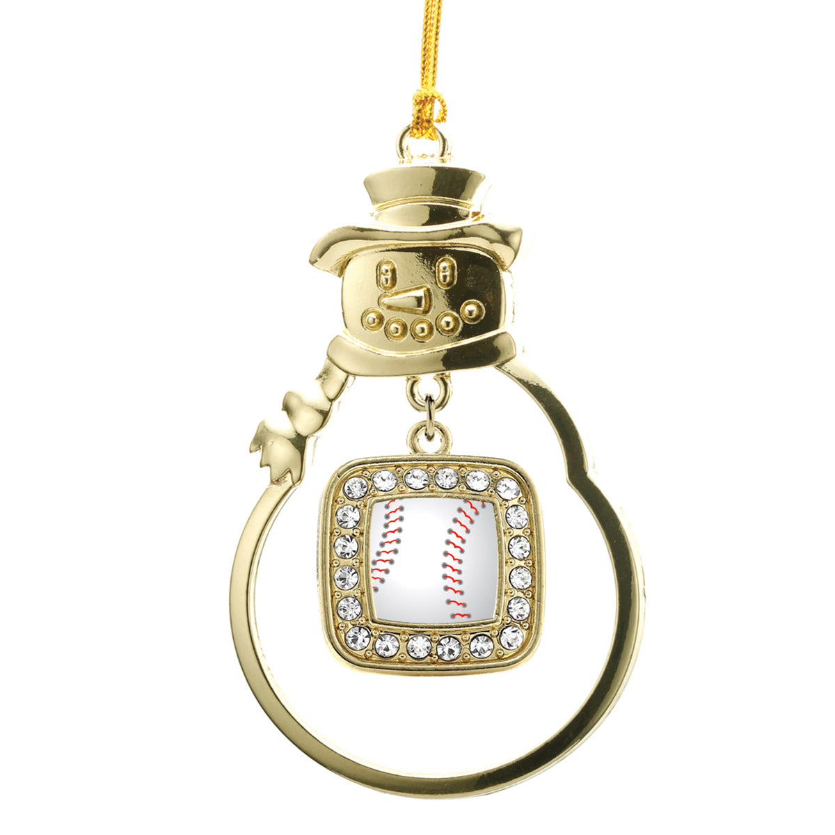 Gold Baseball Square Charm Snowman Ornament