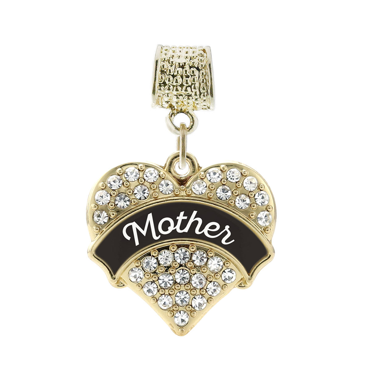 Our sparkling memory charm, equipped with a stylish charm attachment ring and the Black and White Mother pave heart charm, is crafted from white metal with a gold plated finish and accented with cubic zirconia stones.