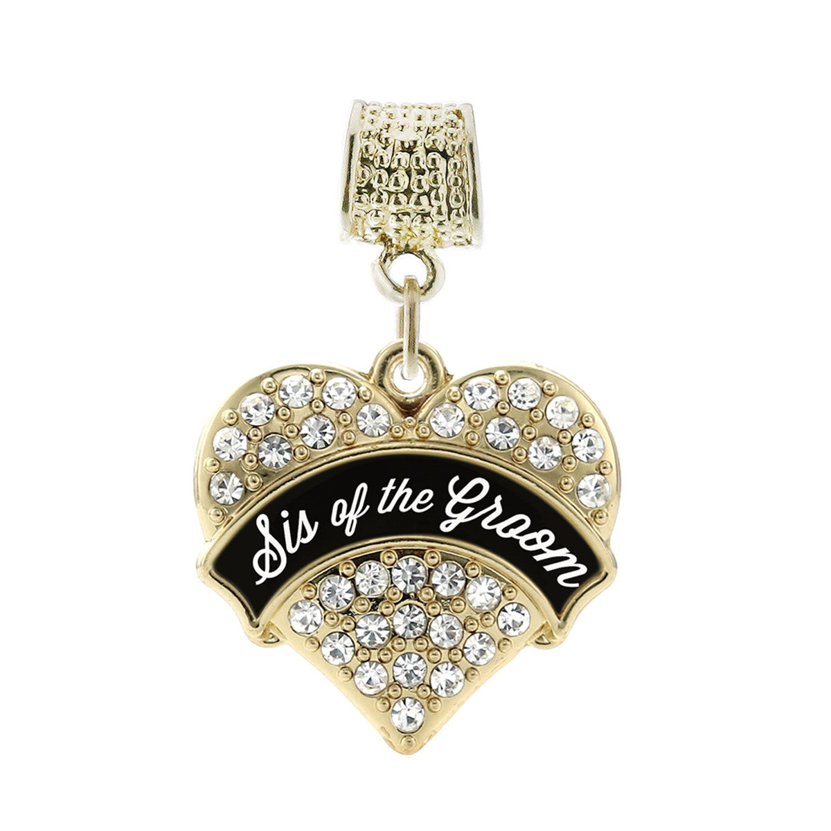 Gold Black and White Sis of the Groom Pave Heart Memory Charm