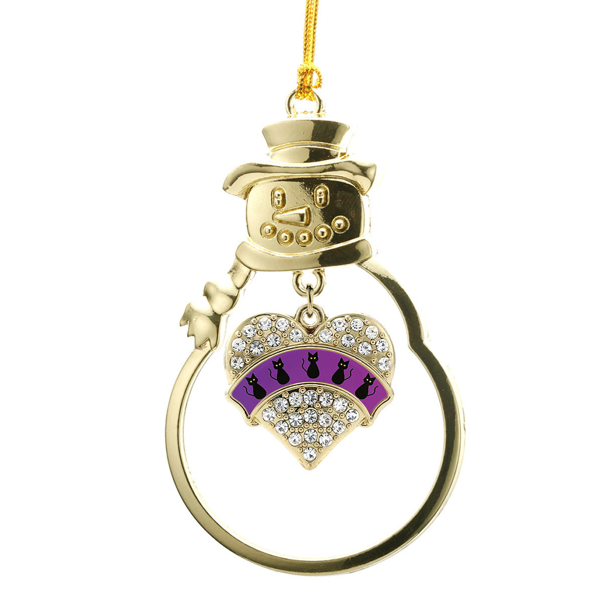 Gold Black Cats Pave Heart Charm Snowman Ornament