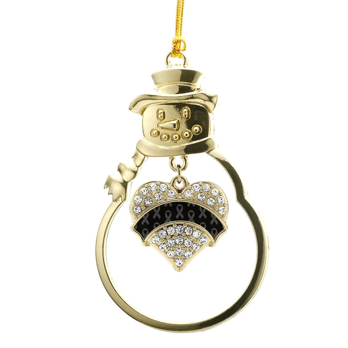 Gold Black Ribbon Support Pave Heart Charm Snowman Ornament