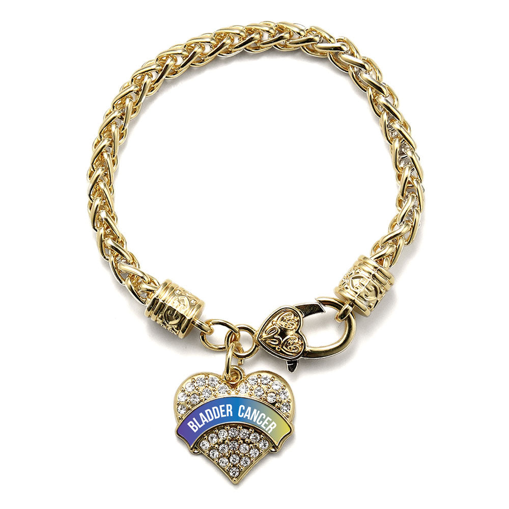 Gold Bladder Cancer Awareness Pave Heart Charm Braided Bracelet