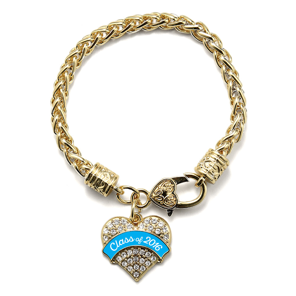Gold Blue Class of 2016 Pave Heart Charm Braided Bracelet