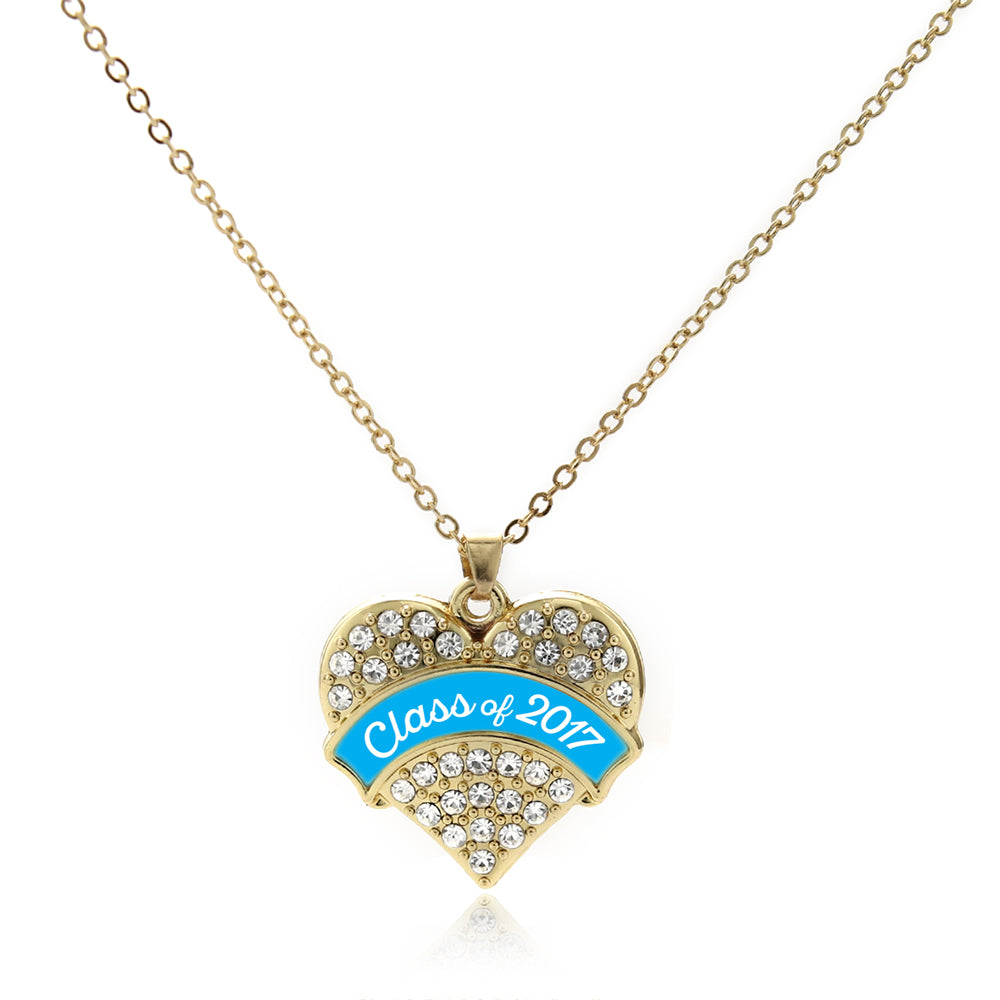 Gold Blue Class of 2017 Pave Heart Charm Classic Necklace