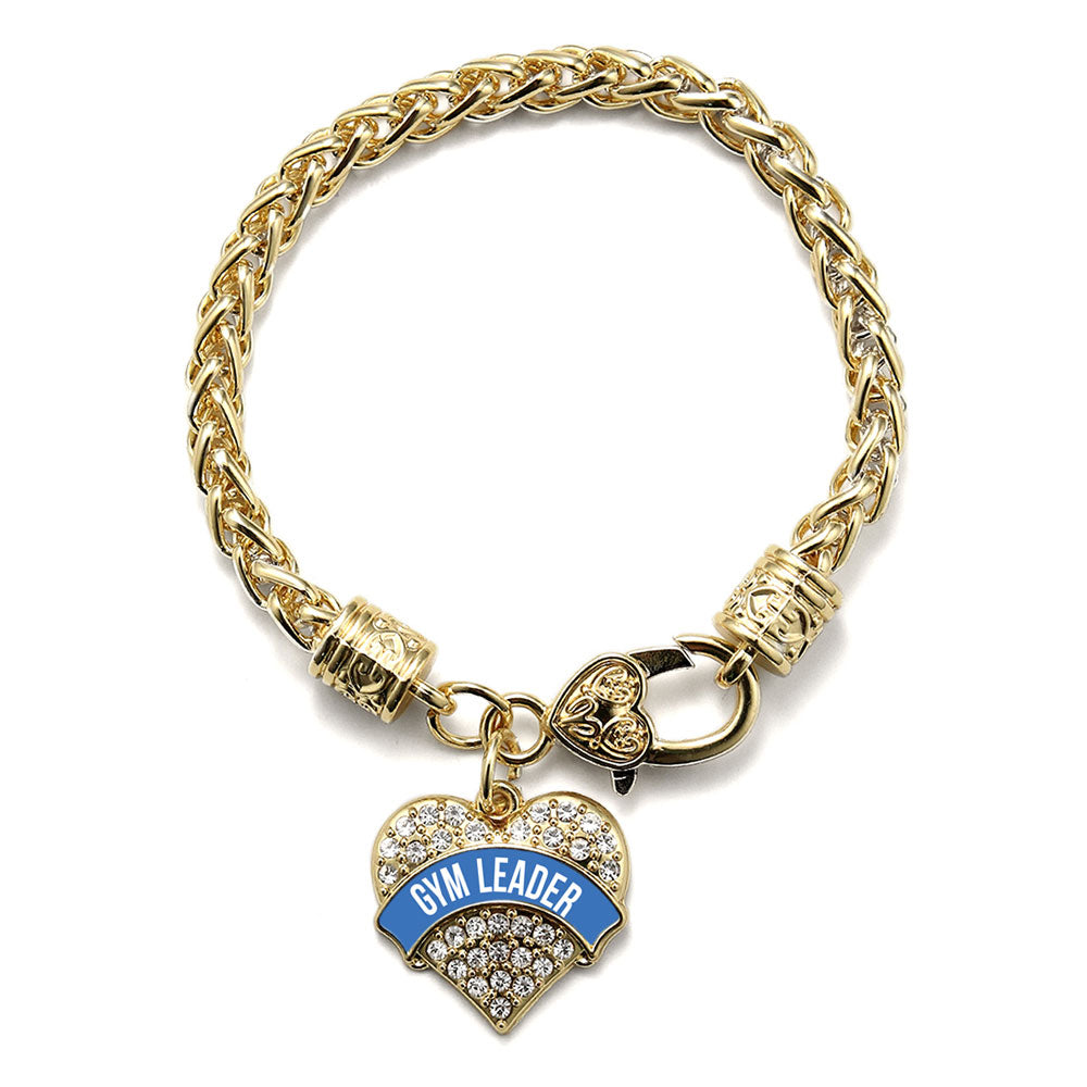 Our sparkling braided bracelet, equipped with a stylish lobster claw clasp and the Blue Gym Leader pave heart charm, is crafted from white metal with a gold plated finish and accented with cubic zirconia stones.