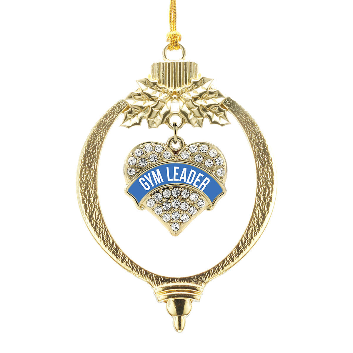 Our sparkling holiday ornament, equipped with a stylish silver rope and the Blue Gym Leader pave heart charm, is crafted from white metal with a gold plated finish and accented with cubic zirconia stones.