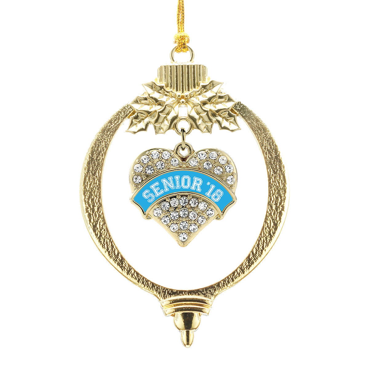 Gold Blue Senior 2018 Pave Heart Charm Holiday Ornament