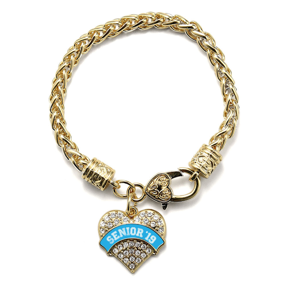 Gold Blue Senior 2019 Pave Heart Charm Braided Bracelet