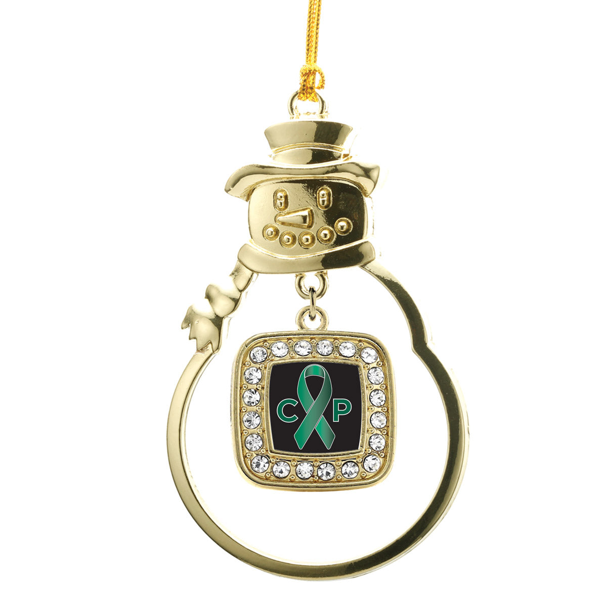Gold Cerebral Palsy Square Charm Snowman Ornament