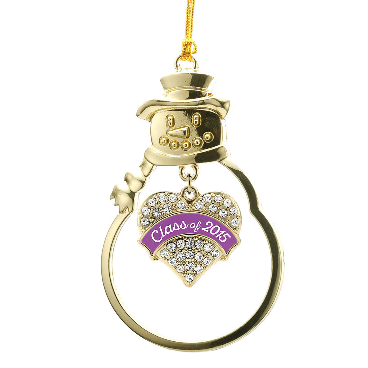 Gold Class of 2015 - Purple Pave Heart Charm Snowman Ornament