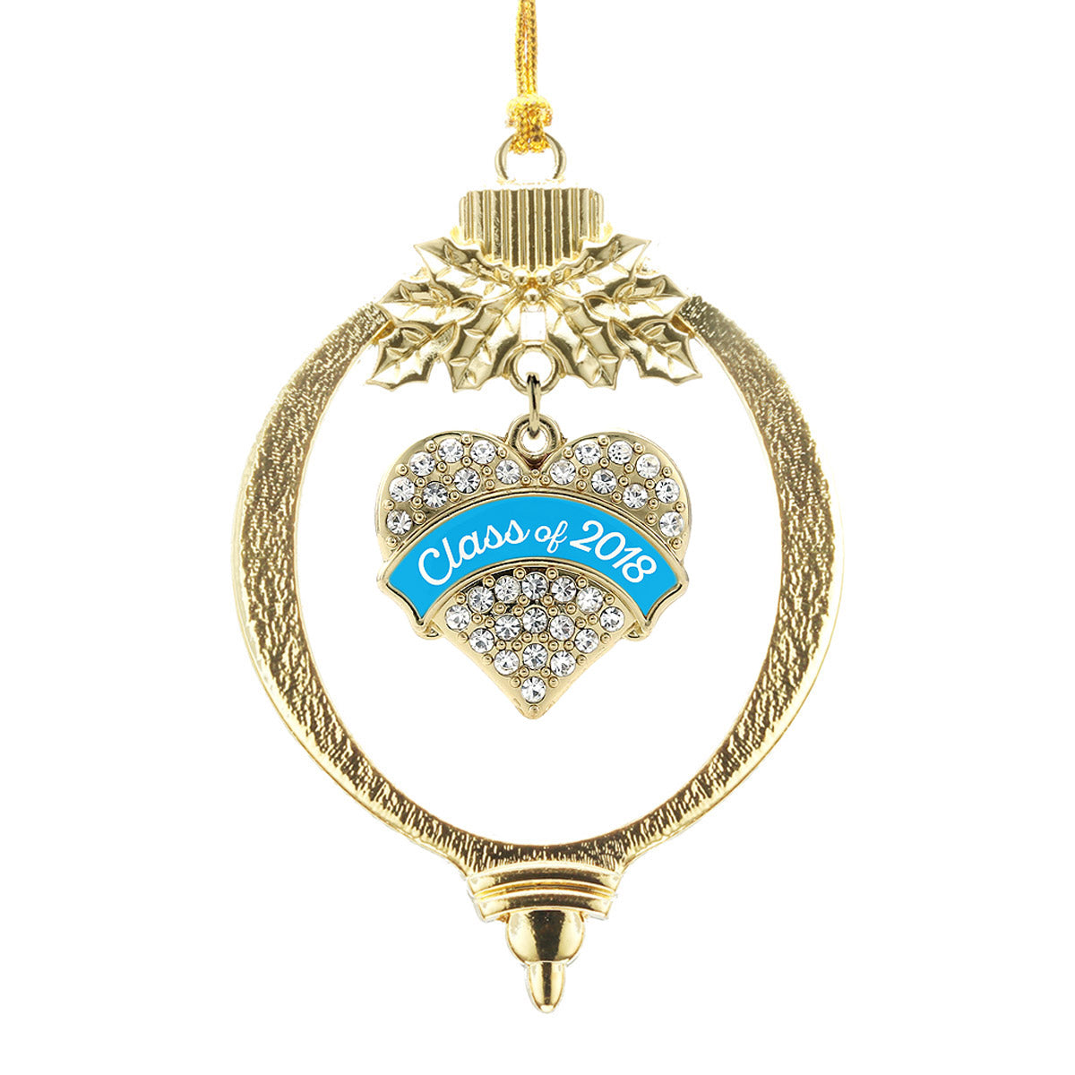 Gold Class of 2018 - Blue Pave Heart Charm Holiday Ornament