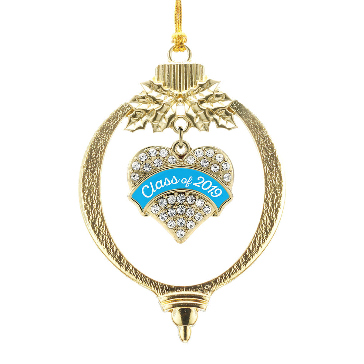 Gold Class of 2019 - Blue Pave Heart Charm Holiday Ornament