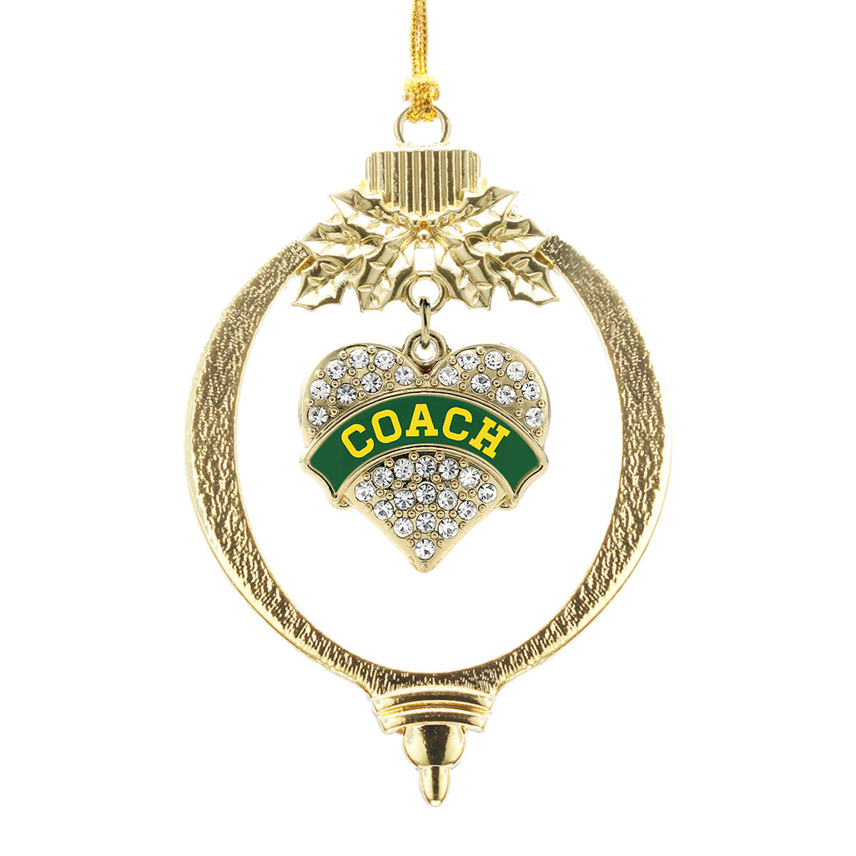 Gold Coach - Forest Green and Yellow Pave Heart Charm Holiday Ornament