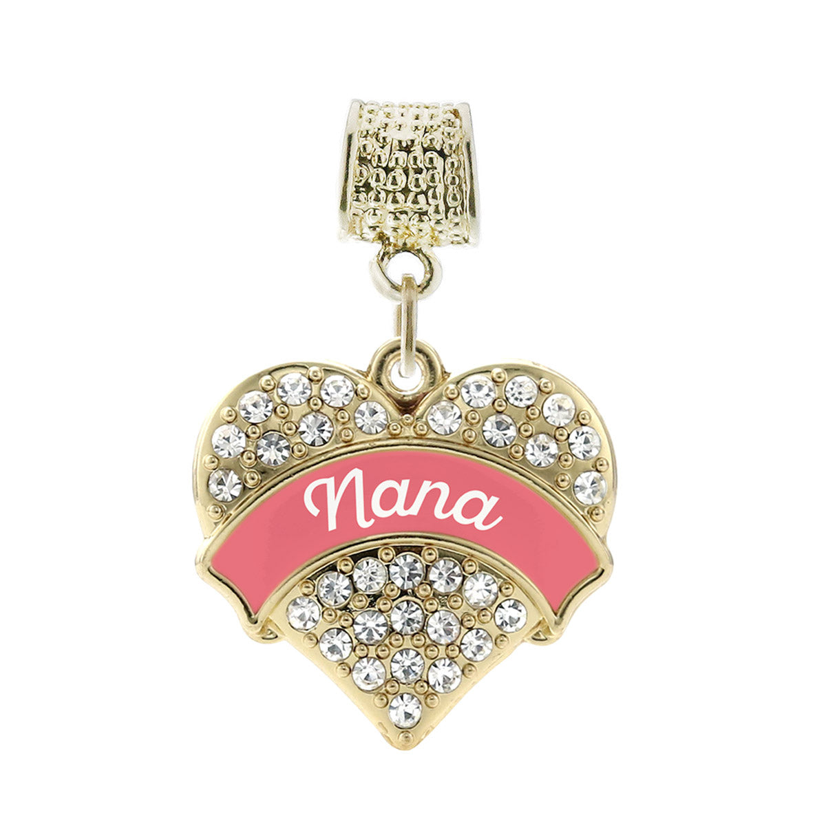 Our sparkling memory charm, equipped with a stylish charm attachment ring and the Coral Nana pave heart charm, is crafted from white metal with a gold plated finish and accented with cubic zirconia stones.