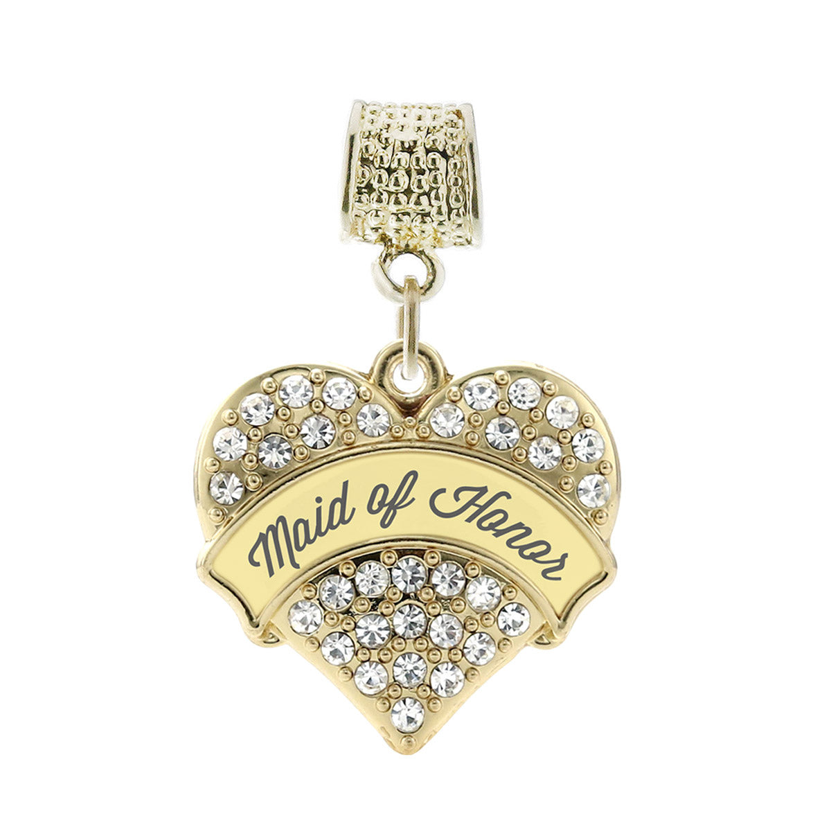Gold Cream Maid of Honor Pave Heart Memory Charm