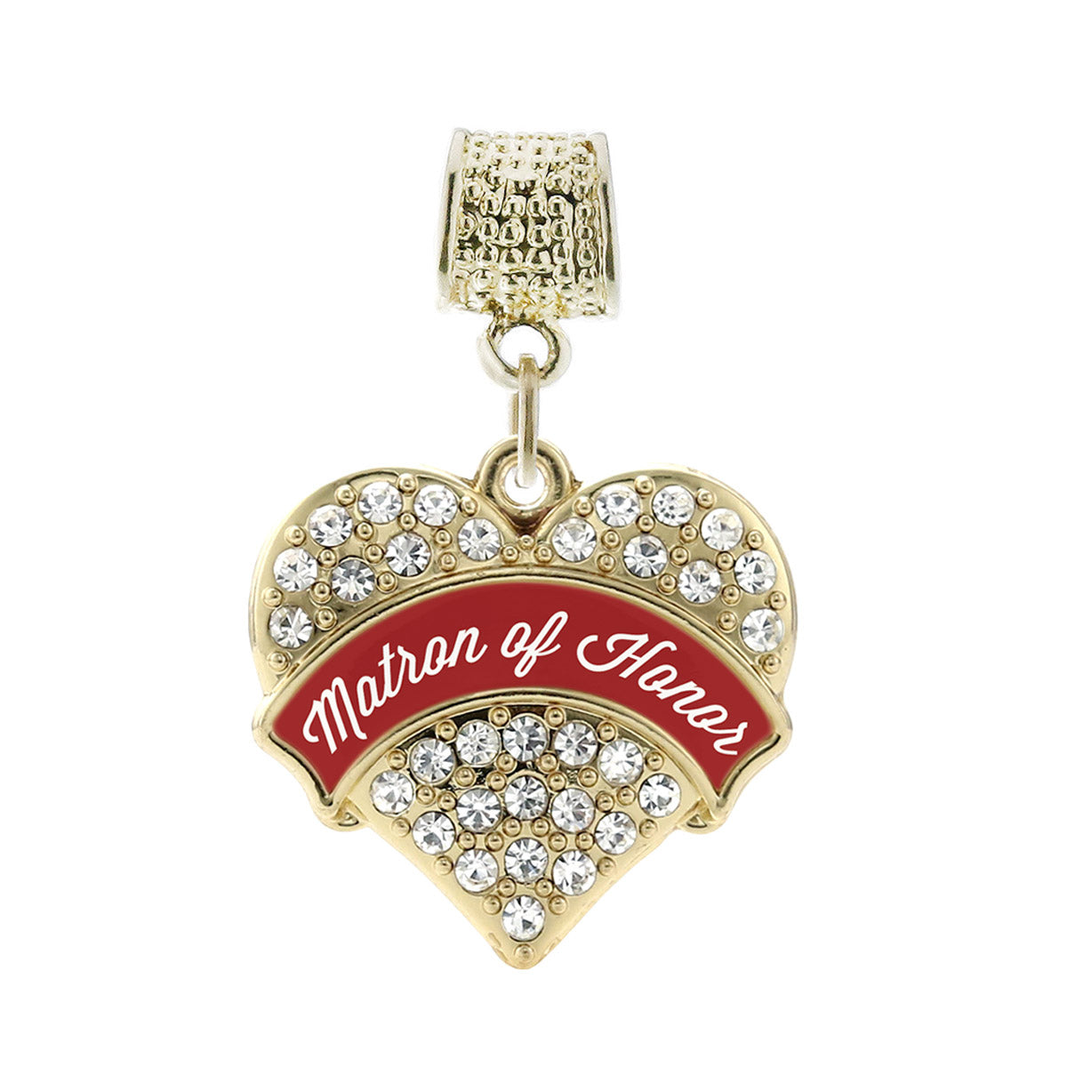 Gold Crimson Red Matron of Honor Pave Heart Memory Charm