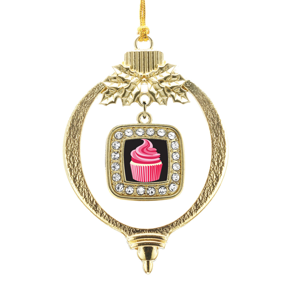 Gold Cupcake Lovers Square Charm Holiday Ornament