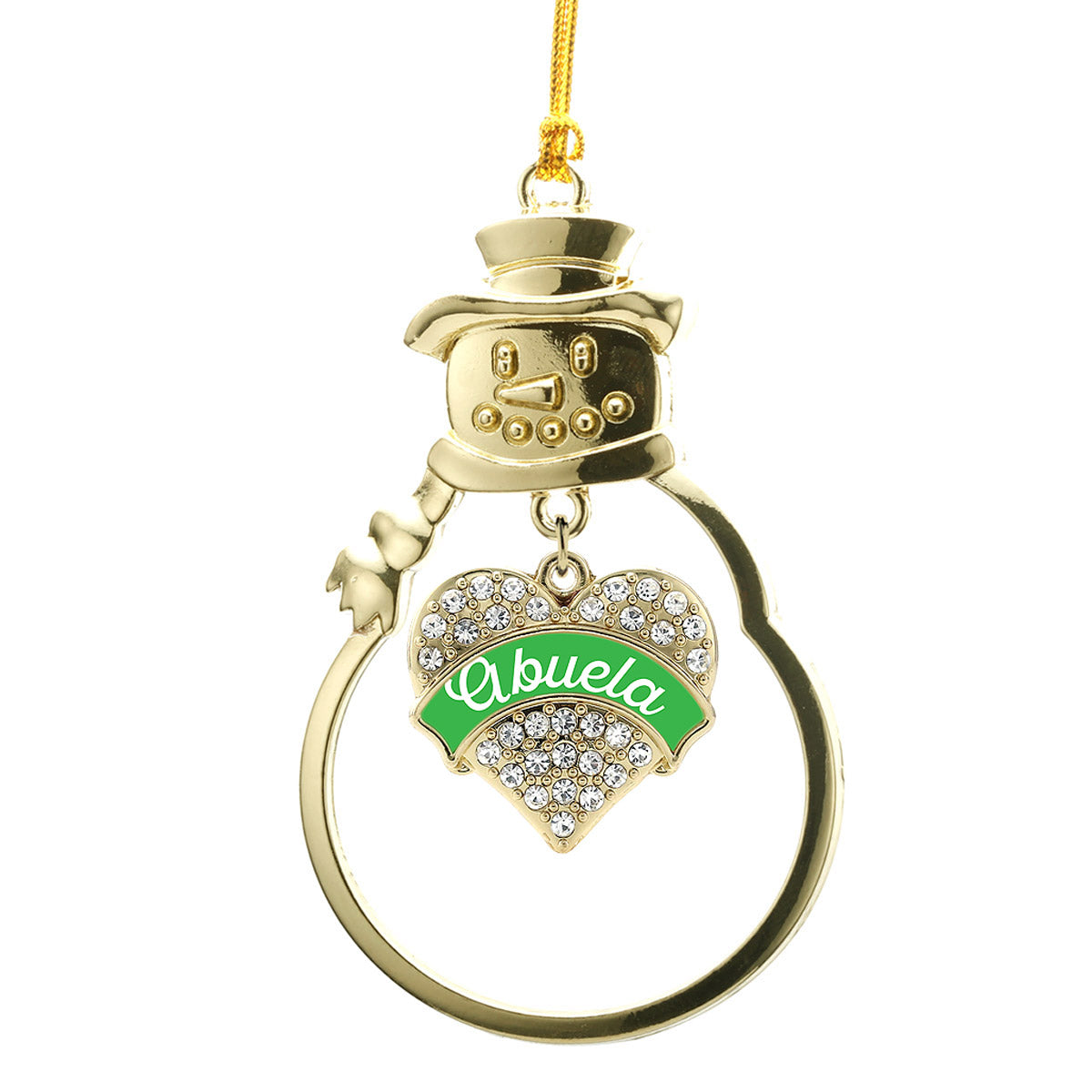 Gold Emerald Green Abuela Pave Heart Charm Snowman Ornament