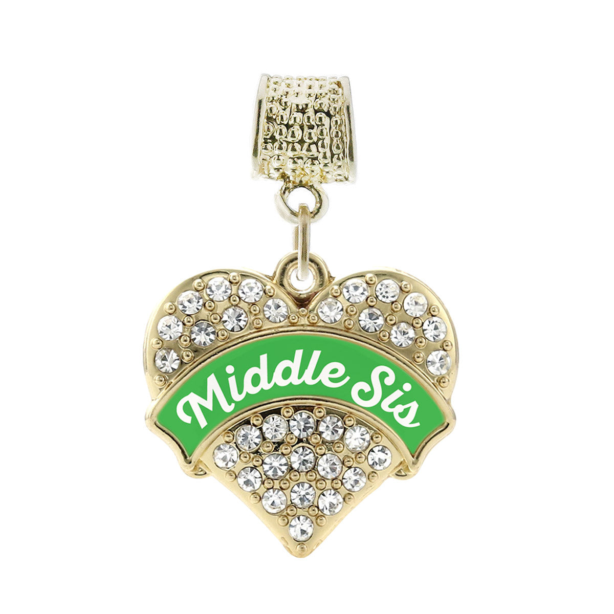 Gold Emerald Green Middle Sister Pave Heart Memory Charm